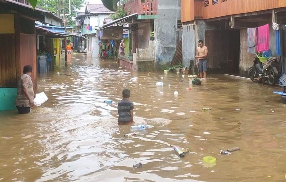 Sorong, Papua Barat Daya – Hujan deras yang tak henti sejak Minggu malam (14/9) mengubah suasana tenang menjadi kepanikan di Kabupaten Sorong. Dalam hitungan jam, air naik dan tujuh distrik – Aimas, Mariat, Mayamuk, Salawati, Maudus, Sayosa Timur, dan Sunook – tergenang banjir.