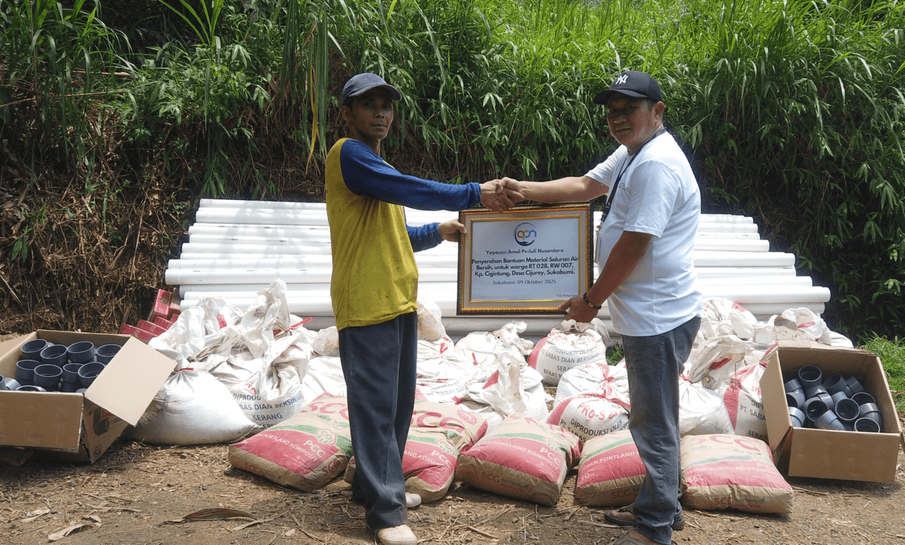 ( Dokumentasi : Saat tim relawan yayasan amal peduli nusantara menyerahkan bahan material untuk pengadaan saluran air bersih pada hari kamis, 9 oktober 2025 )