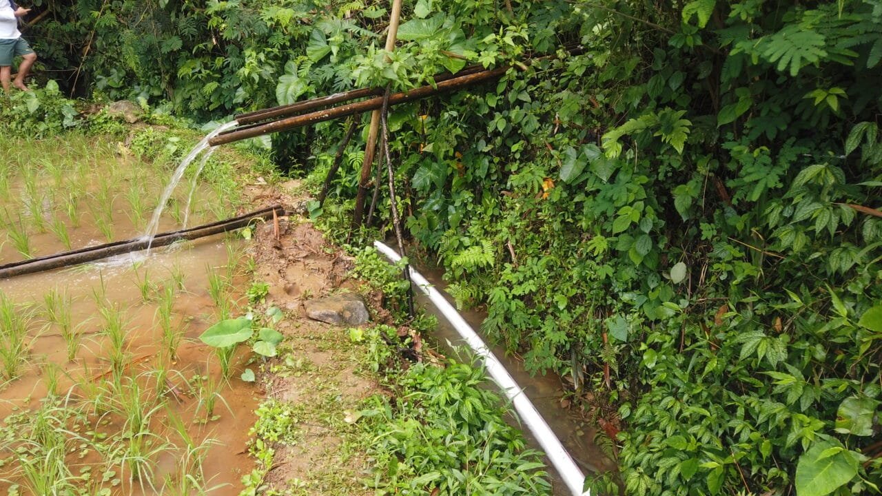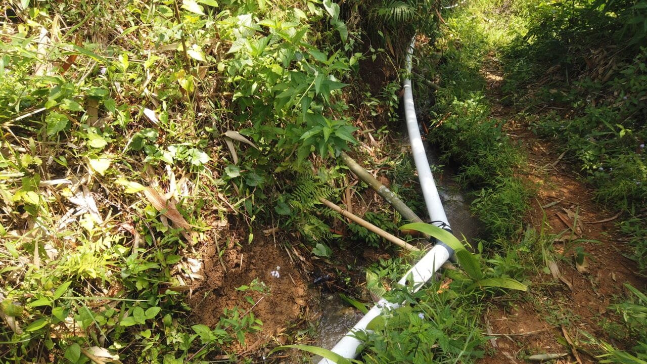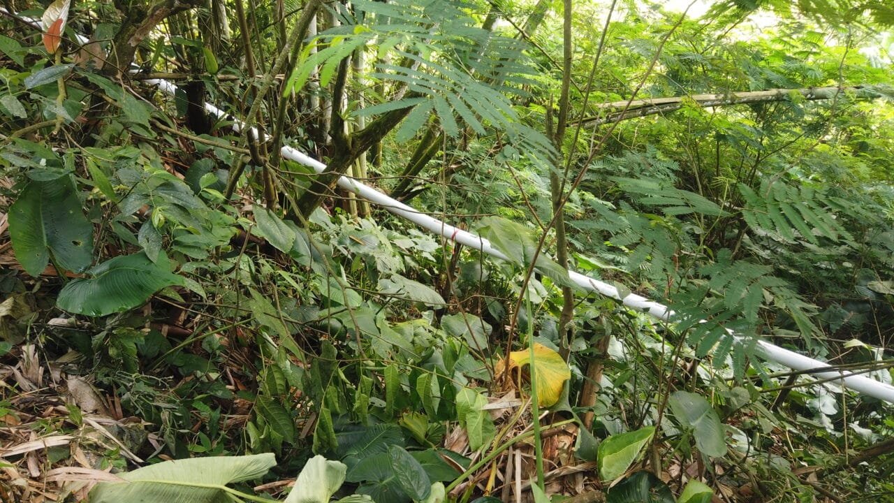 ( Dokumentasi : Instalasi pipa yang sudah selesai dipasang sepanjang 540 meter dari mata air utama sampai ke bak penampungan kedua yang akan langsung mengalir ke masyarakat )