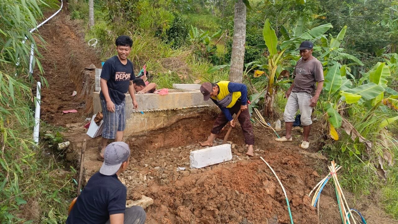 Seluruh material ini digunakan untuk membangun bak penampungan utam, merenovasi bak penampungan kedua, serta memasang jalur pipa sepanjang 540 meter agar air bersih dapat langsung mengalir ke rumah-rumah warga — tanpa lagi melewati tanah terbuka.