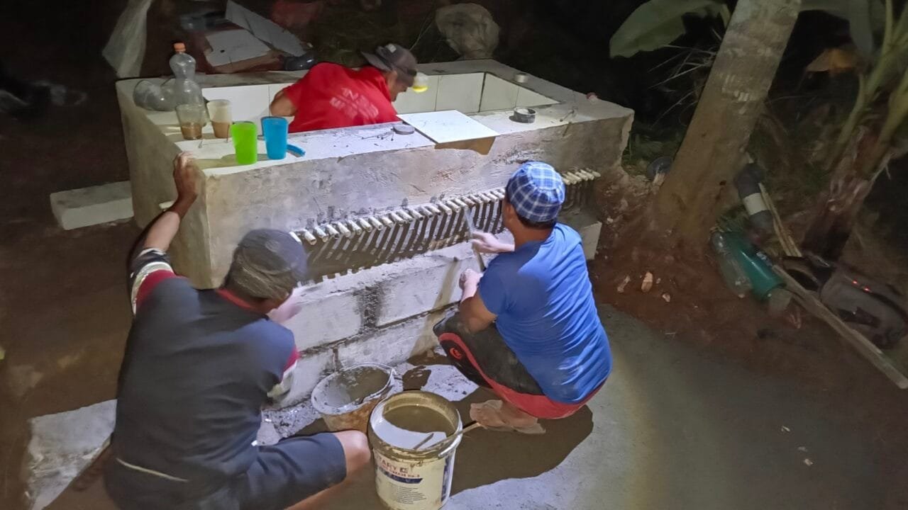 ( Dokumentasi : Proses penyelesaian bak penampungan utama yang akan disambungkan dengan pipa )