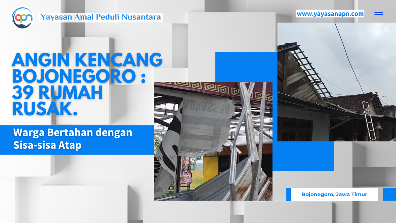 Yayasan Amal Peduli Nusantara menyampaikan turut prihatin kepada warga korban hujan ekstrem dan angin kencang di wilayah bojonegoro. Kami juga berharap tidak adanya penambahan korban jiwa atau korban kerusakan lainnya.