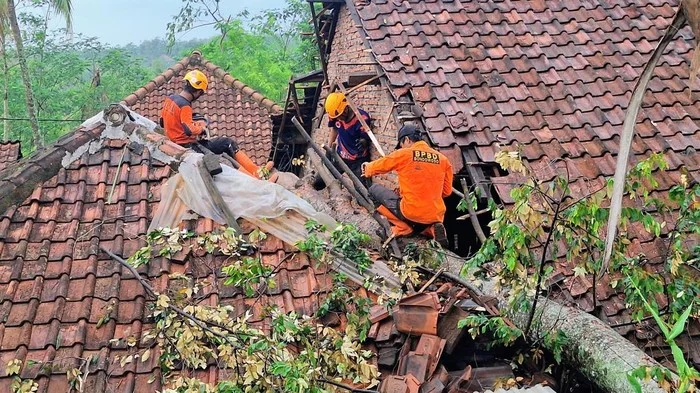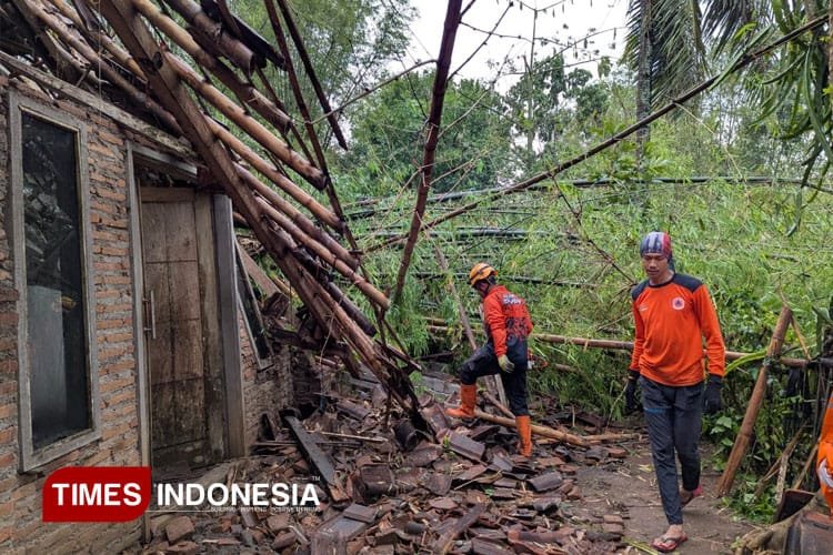 “Angin datang tiba-tiba, genteng beterbangan, pohon bambu tumbang ke rumah,” tutur seorang warga yang rumahnya roboh sebagian.