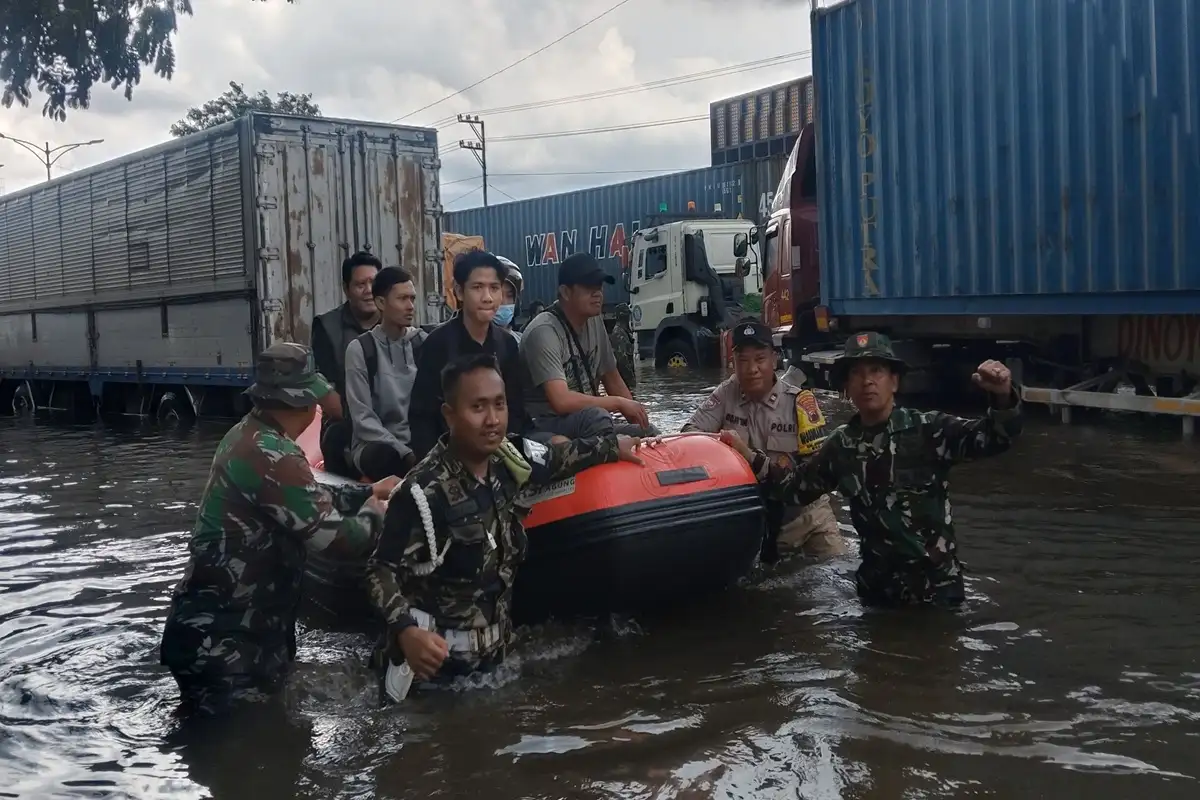 - Akibat genangan: beberapa ruas jalan arteri lumpuh, transportasi terganggu, evakuasi dilakukan.