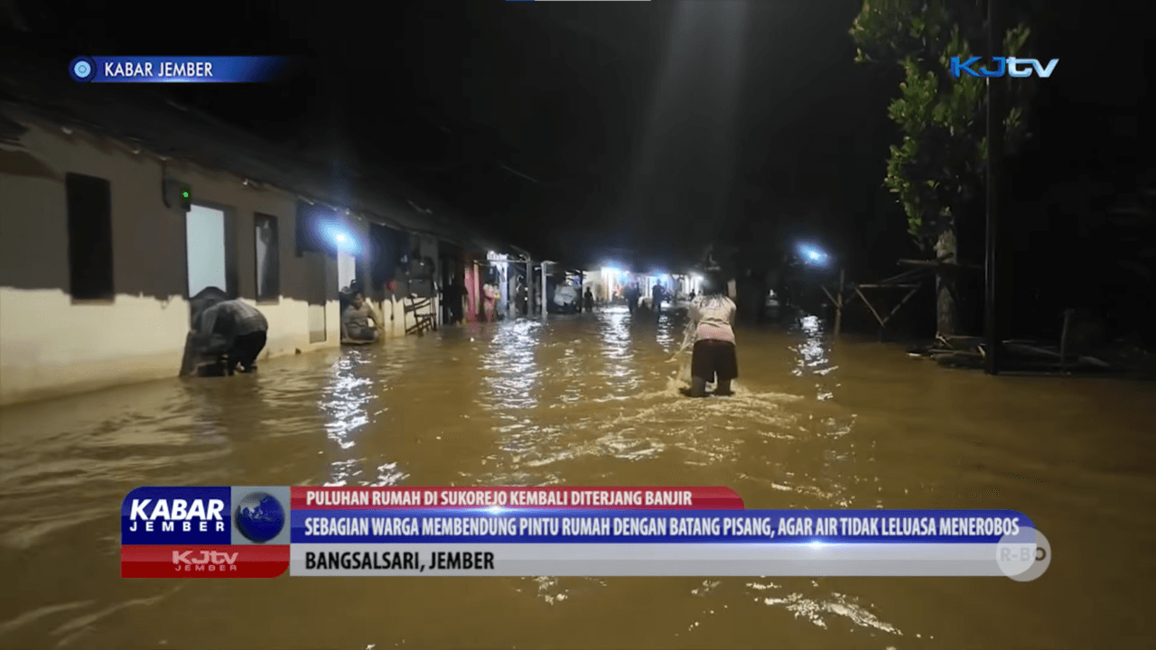 Banjir melanda Desa Sukorejo, Kecamatan Bangsalsari, Kabupaten Jember pada 7 Desember 2025 setelah hujan intensitas tinggi menyebabkan sungai setempat meluap. Genangan air mencapai sekitar 50 cm di beberapa titik pemukiman.