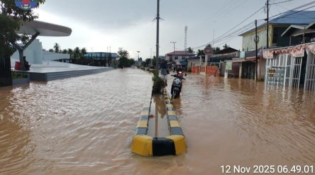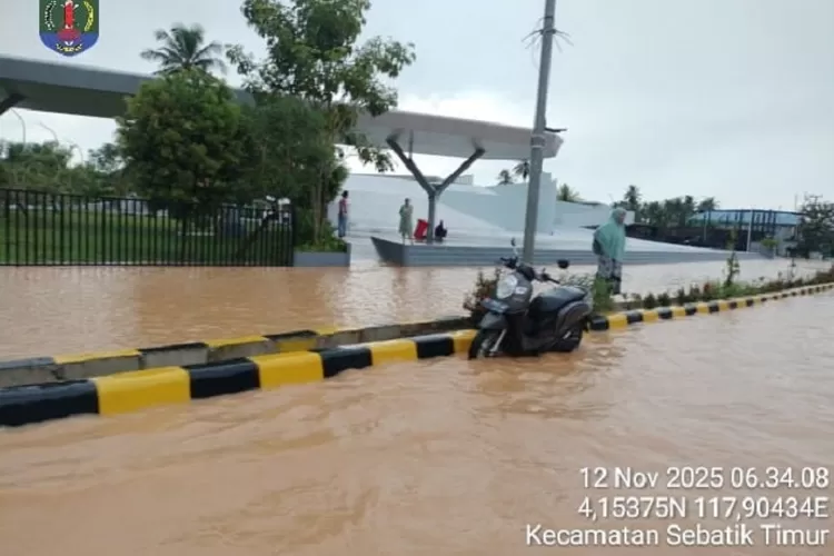 Nunukan, Banjir yang melanda dua kecamatan di Kabupaten Nunukan, Kalimantan Utara—Sebatik Timur dan Sebatik Tengah—pada Rabu pagi, 12 November 2025, membuat aktivitas warga terhenti. Hujan deras sejak malam sebelumnya menyebabkan air naik hingga 40–100 cm sekitar pukul 05.11 WITA, merendam permukiman dan fasilitas umum.