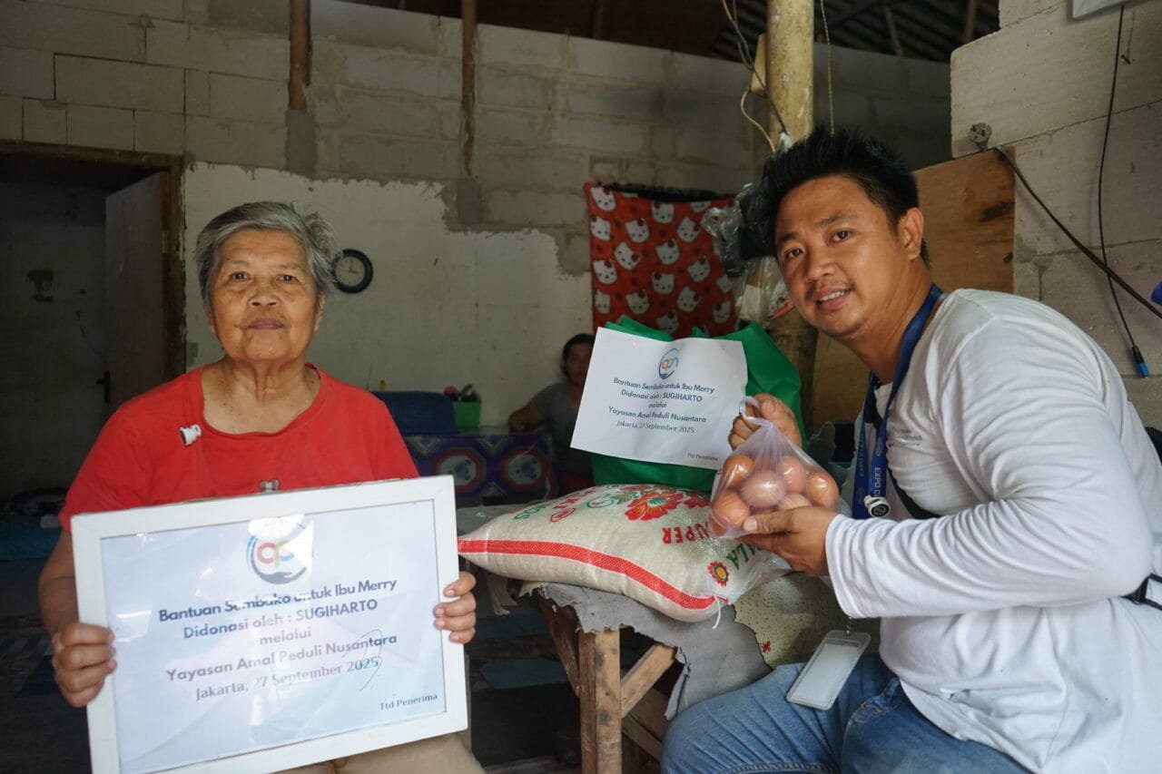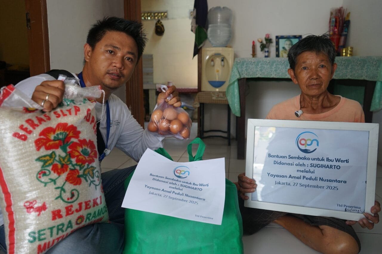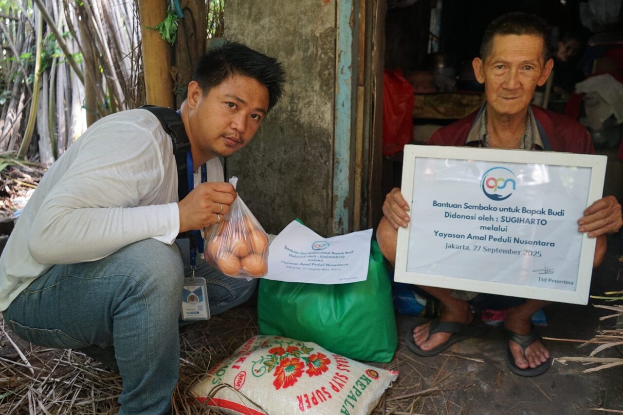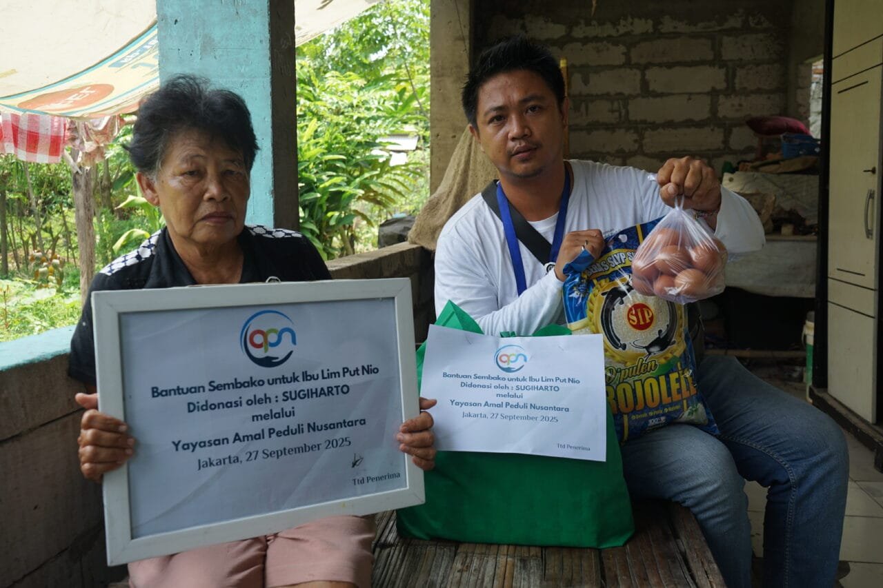 Yayasan Amal Peduli Nusantara hadir untuk meringankan beban mereka dengan memberikan paket sembako berisi beras, minyak, mie instan, sarden, susu kental manis, telur, garam, dan biskuit regal.