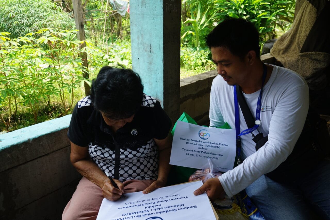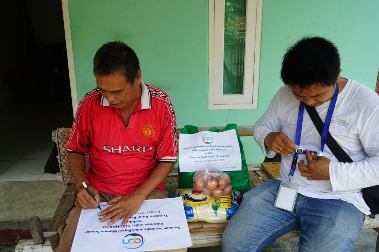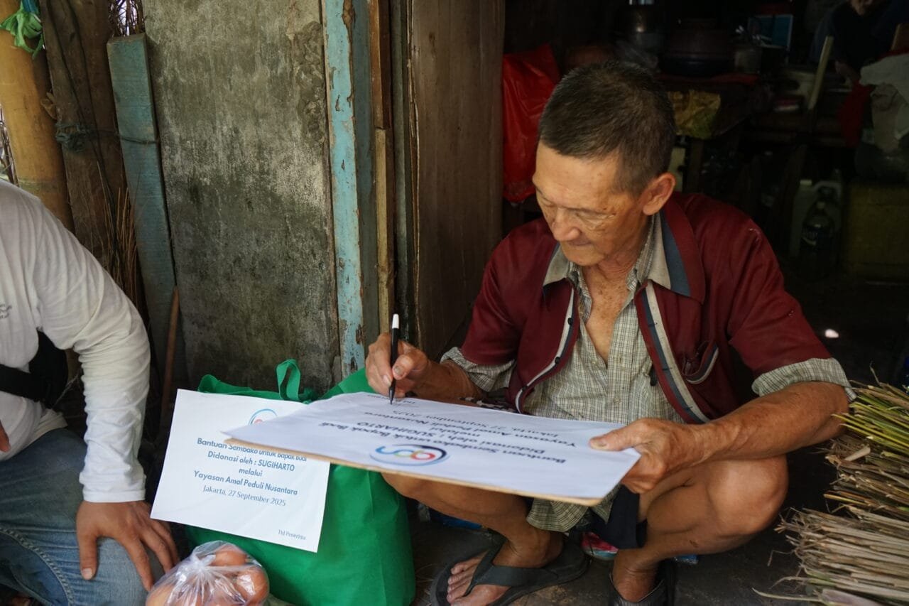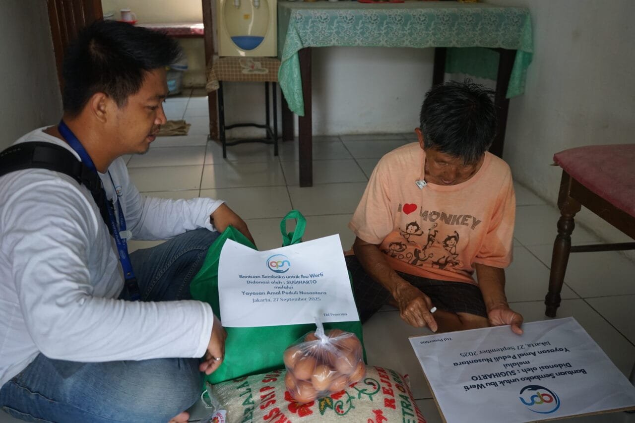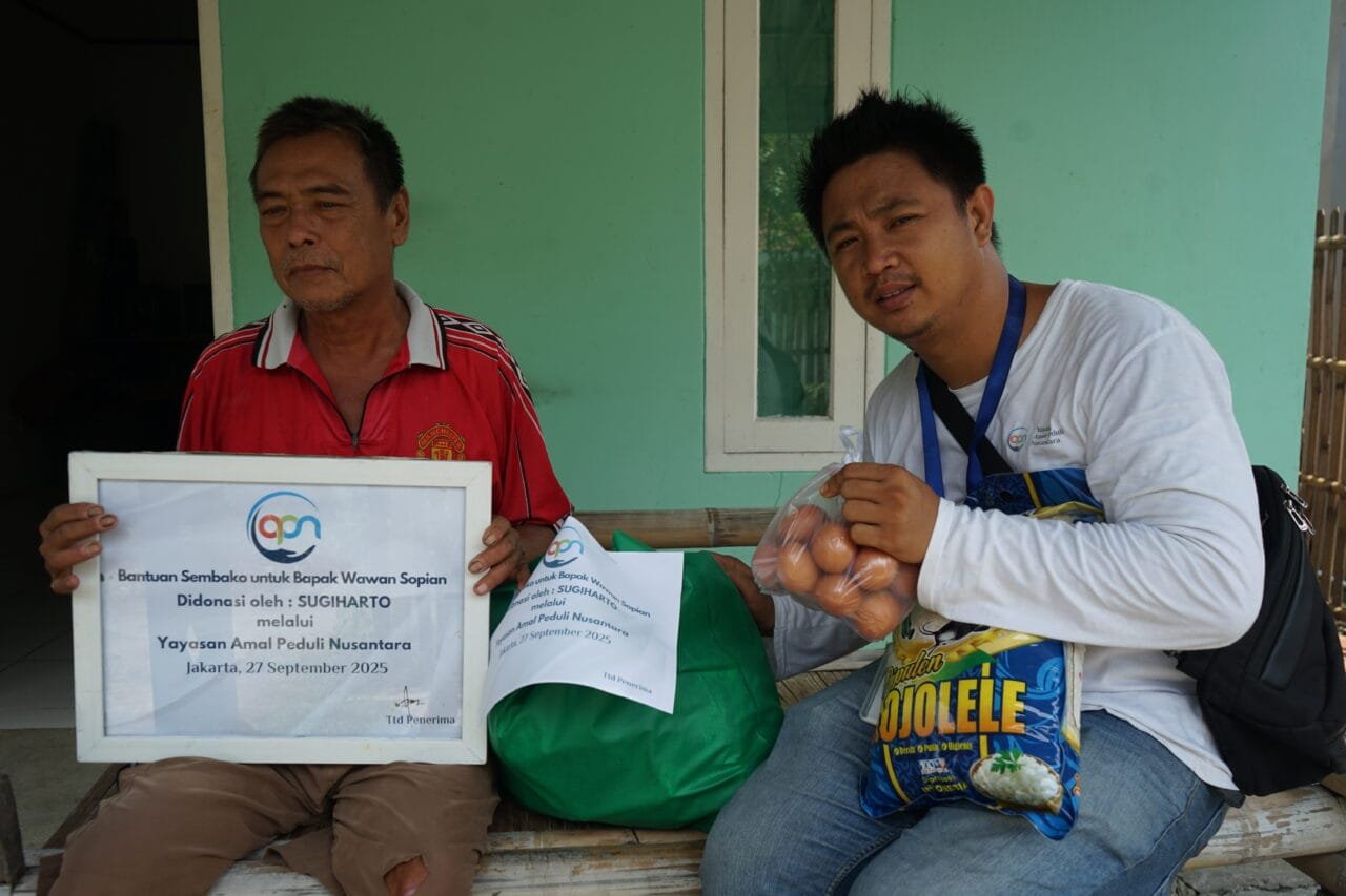 Yayasan Amal Peduli Nusantara hadir untuk meringankan beban mereka dengan memberikan paket sembako berisi beras, minyak, mie instan, sarden, susu kental manis, telur, garam, dan biskuit regal.