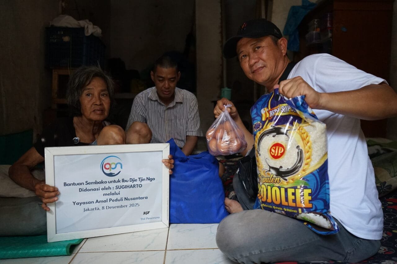 Kalimat sederhana ini terasa begitu nyata saat Yayasan Amal Peduli Nusantara menyalurkan paket sembako kepada dua lansia di Kapuk, Cengkareng, untuk membantu mereka memenuhi kebutuhan sehari-hari.