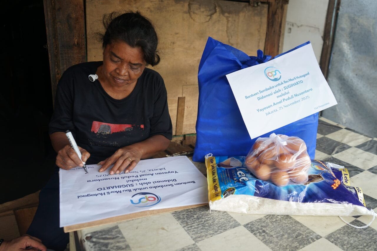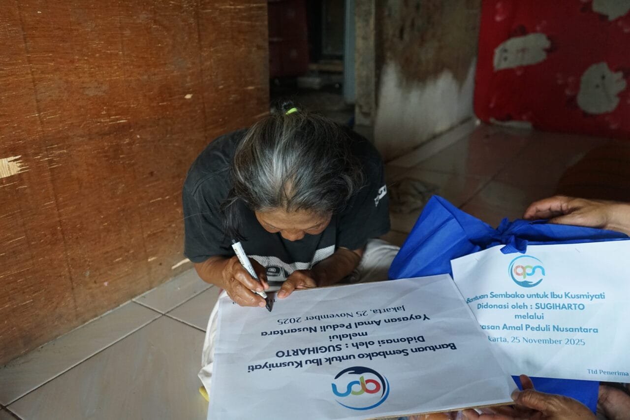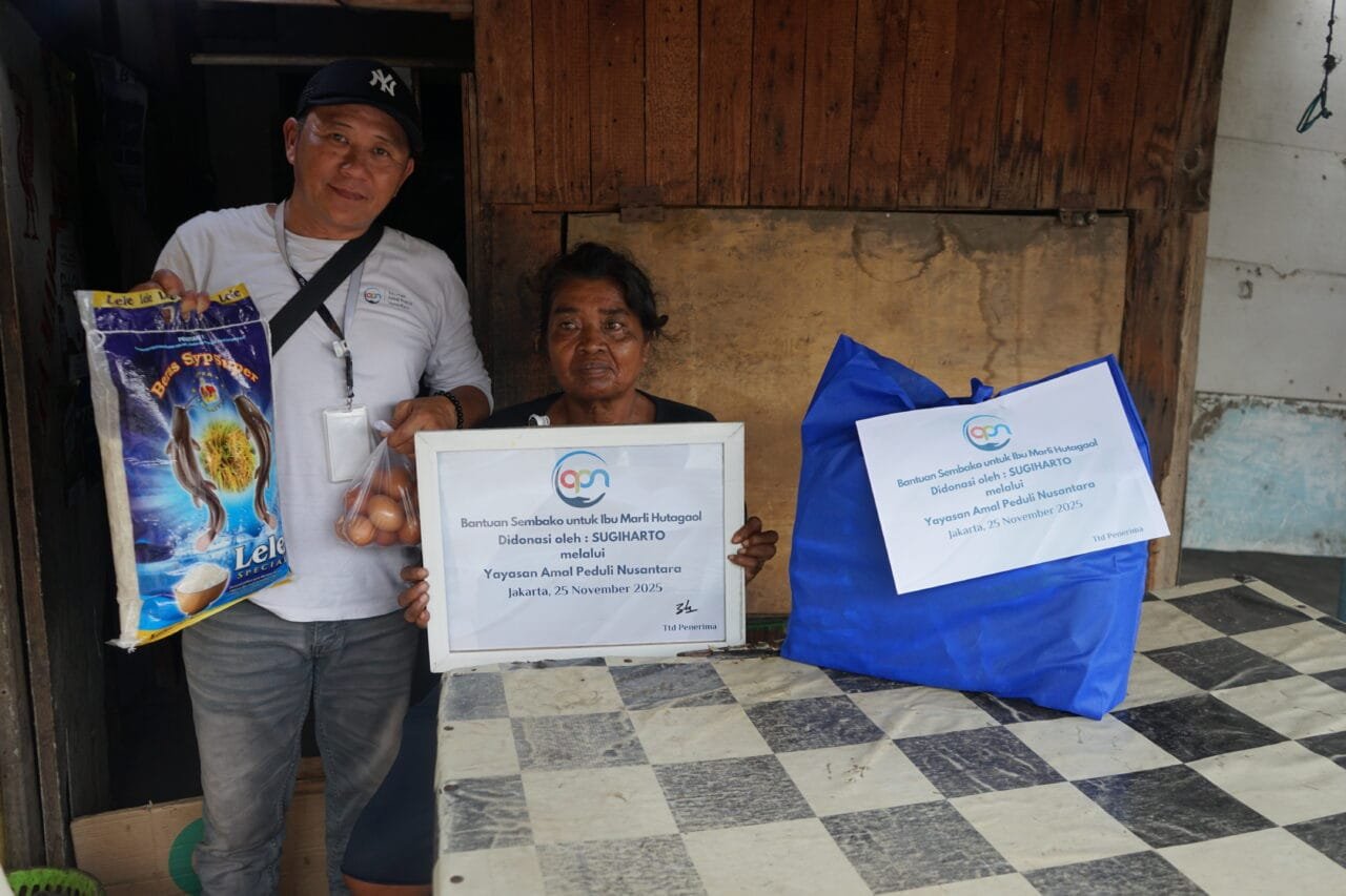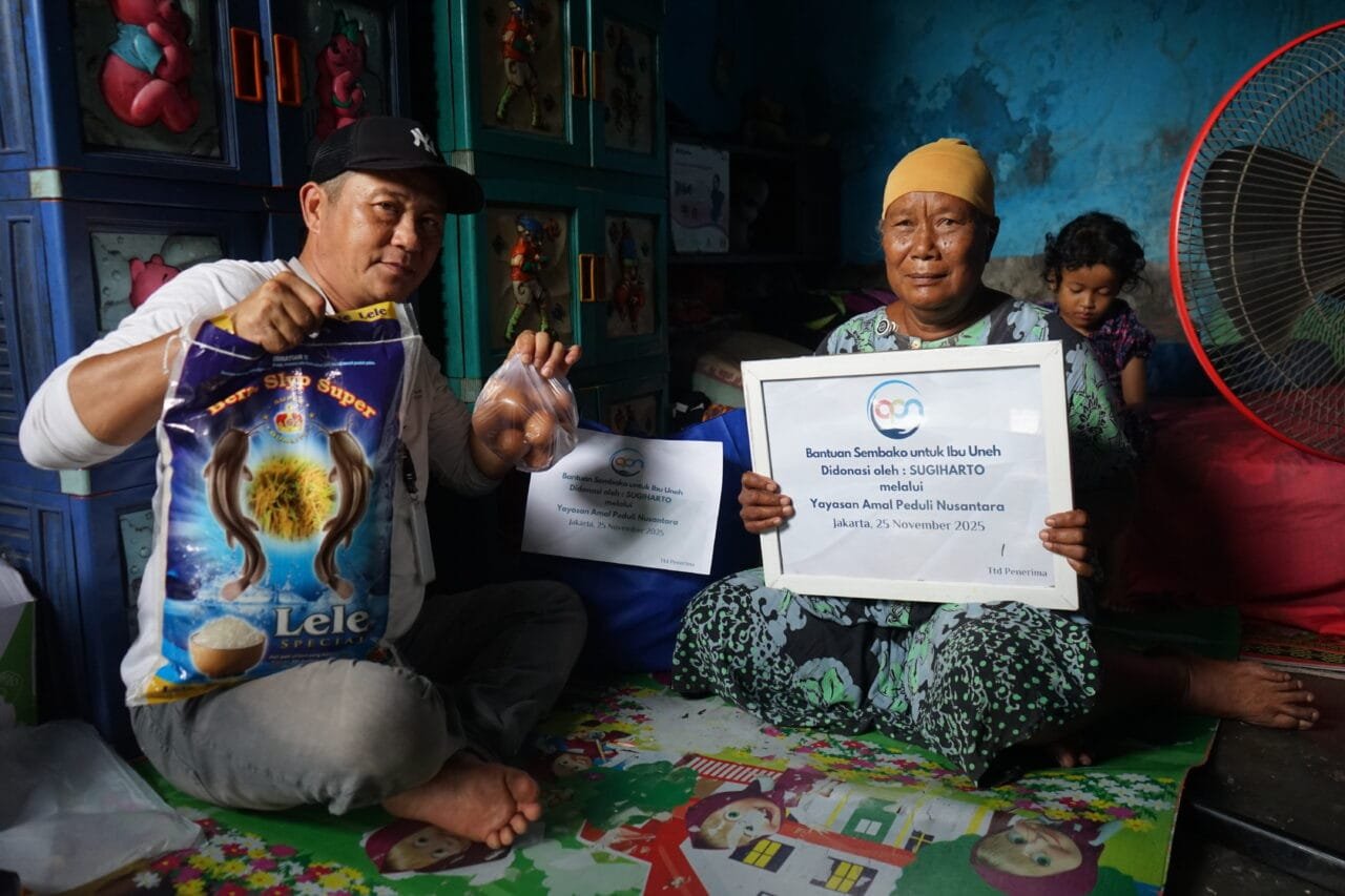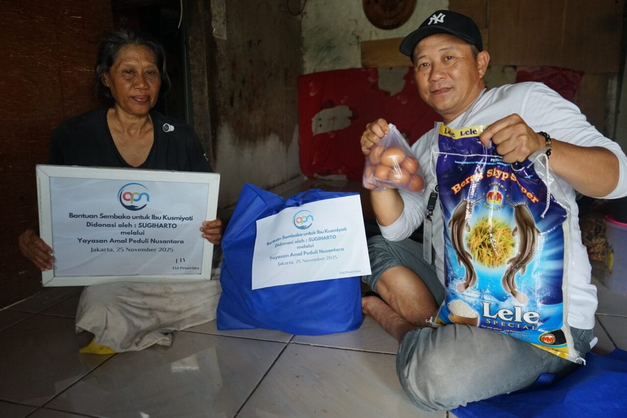 Cilincing, Jakarta Utara — Yayasan Amal Peduli Nusantara kembali menyalurkan bantuan paket sembako kepada tiga lansia yang hidup dalam keterbatasan.