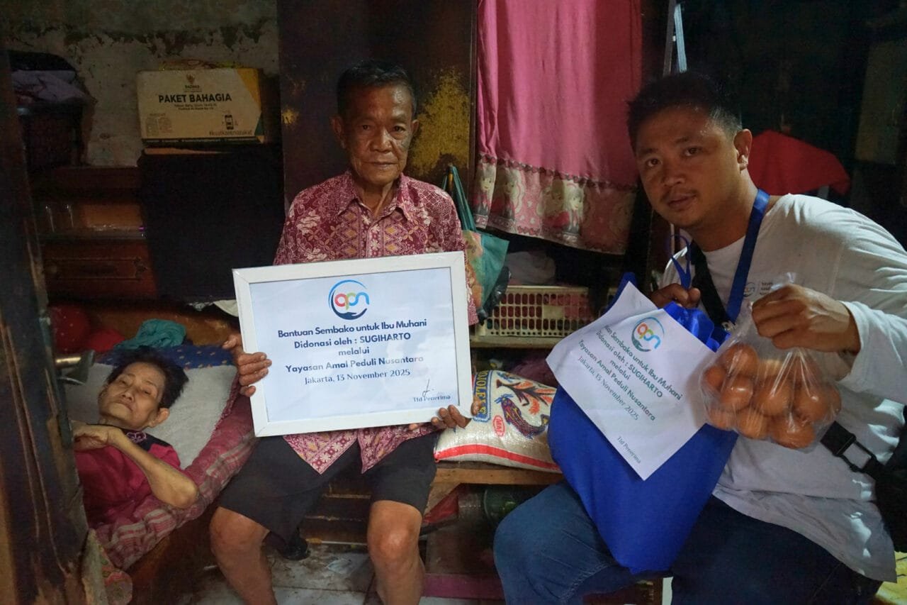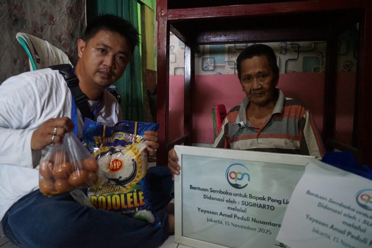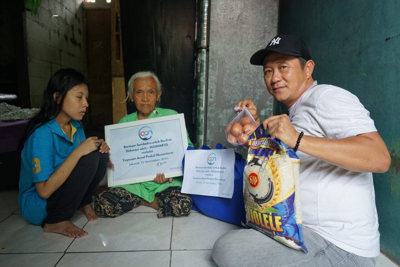 Tangerang, Yayasan Amal Peduli Nusantara kembali menyalurkan bantuan paket sembako kepada tiga lansia di wilayah Kedaung, Tangerang pada hari Kamis, 13 November 2025.