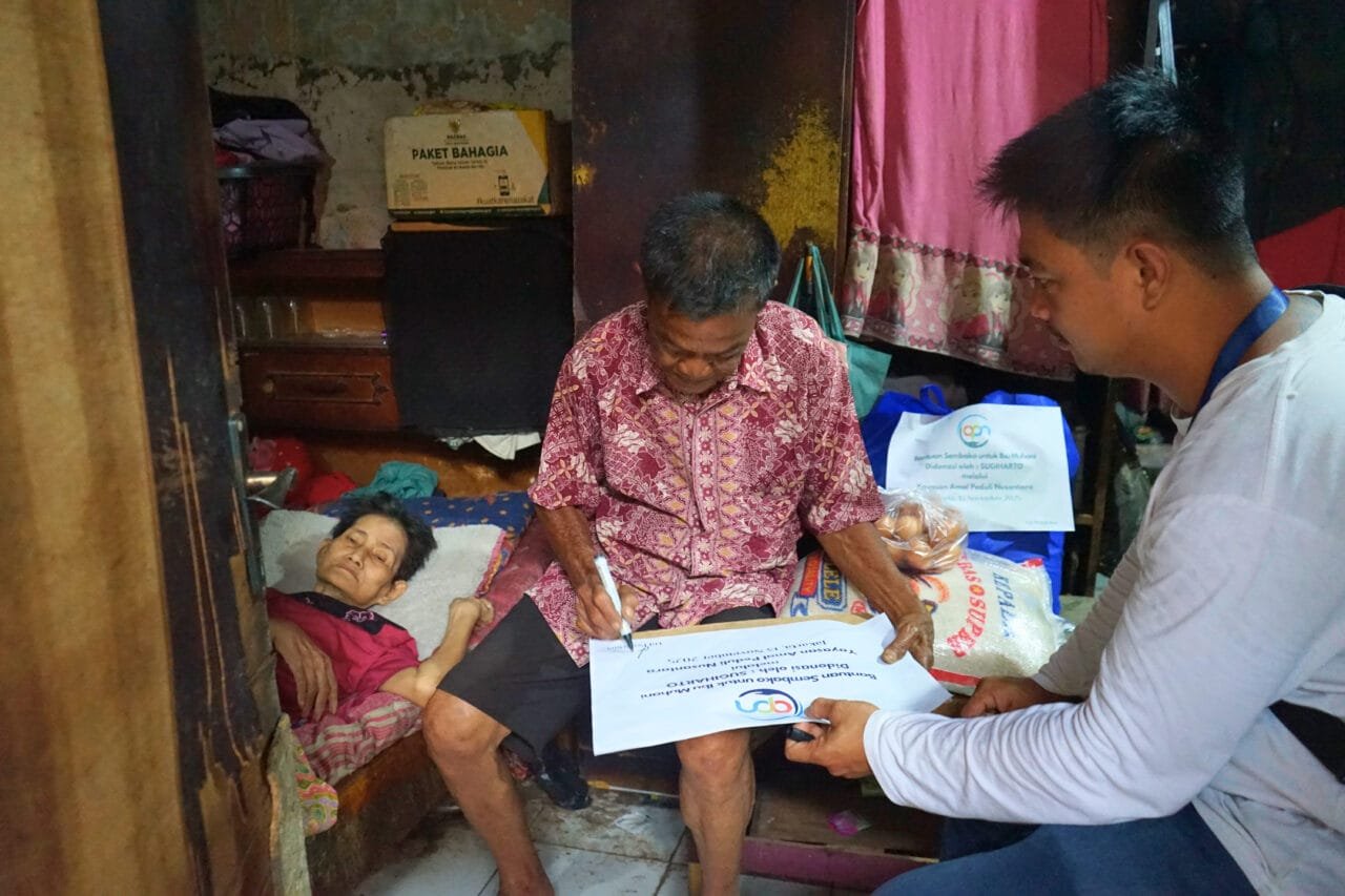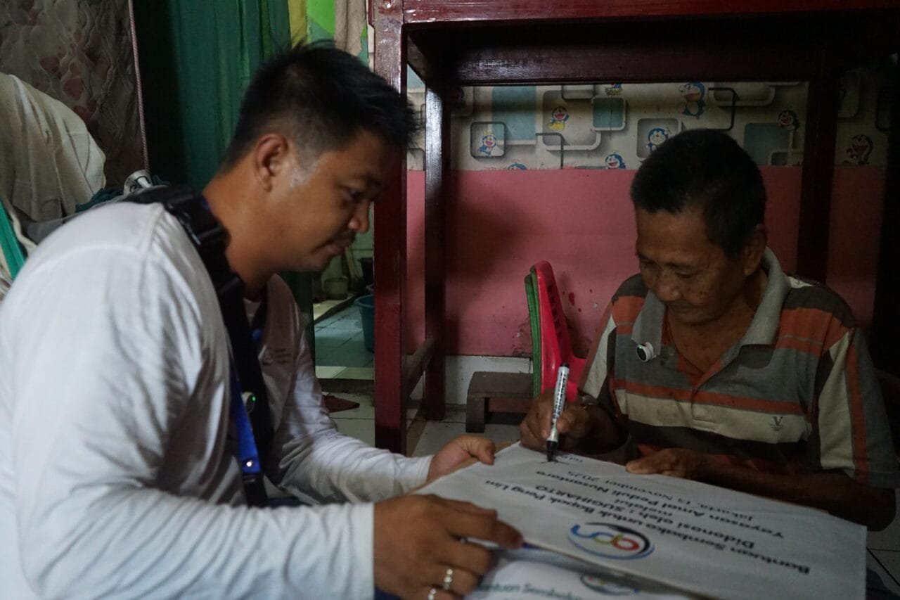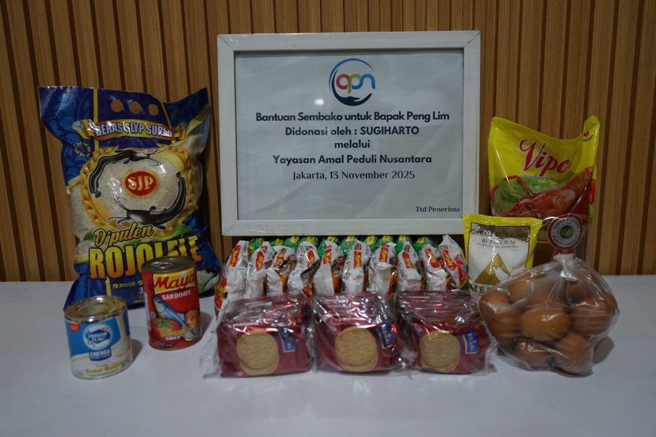 Tangerang, Yayasan Amal Peduli Nusantara kembali menyalurkan bantuan paket sembako kepada tiga lansia di wilayah Kedaung, Tangerang pada hari Kamis, 13 November 2025.