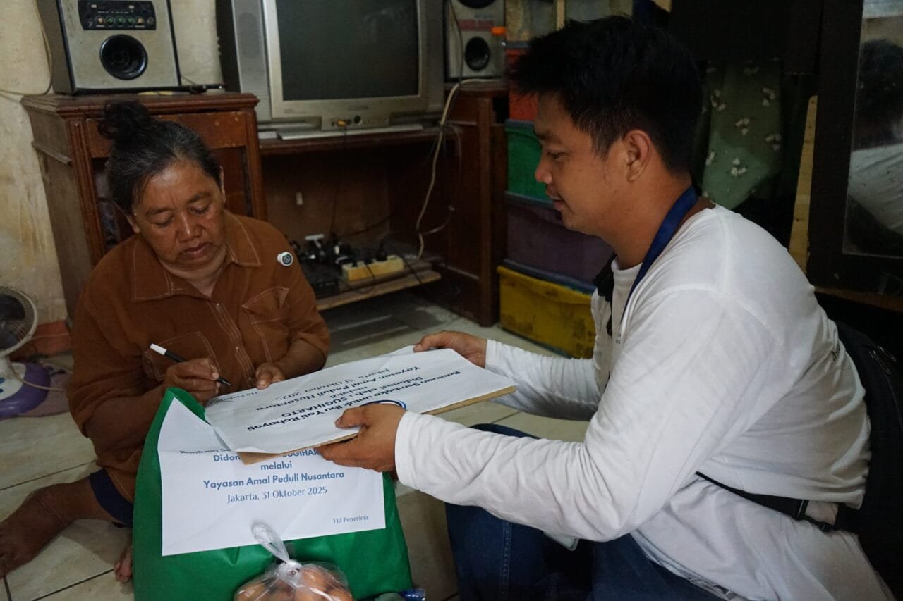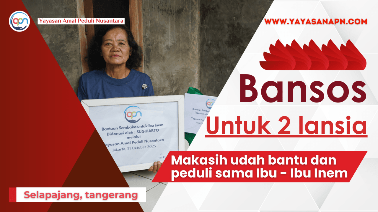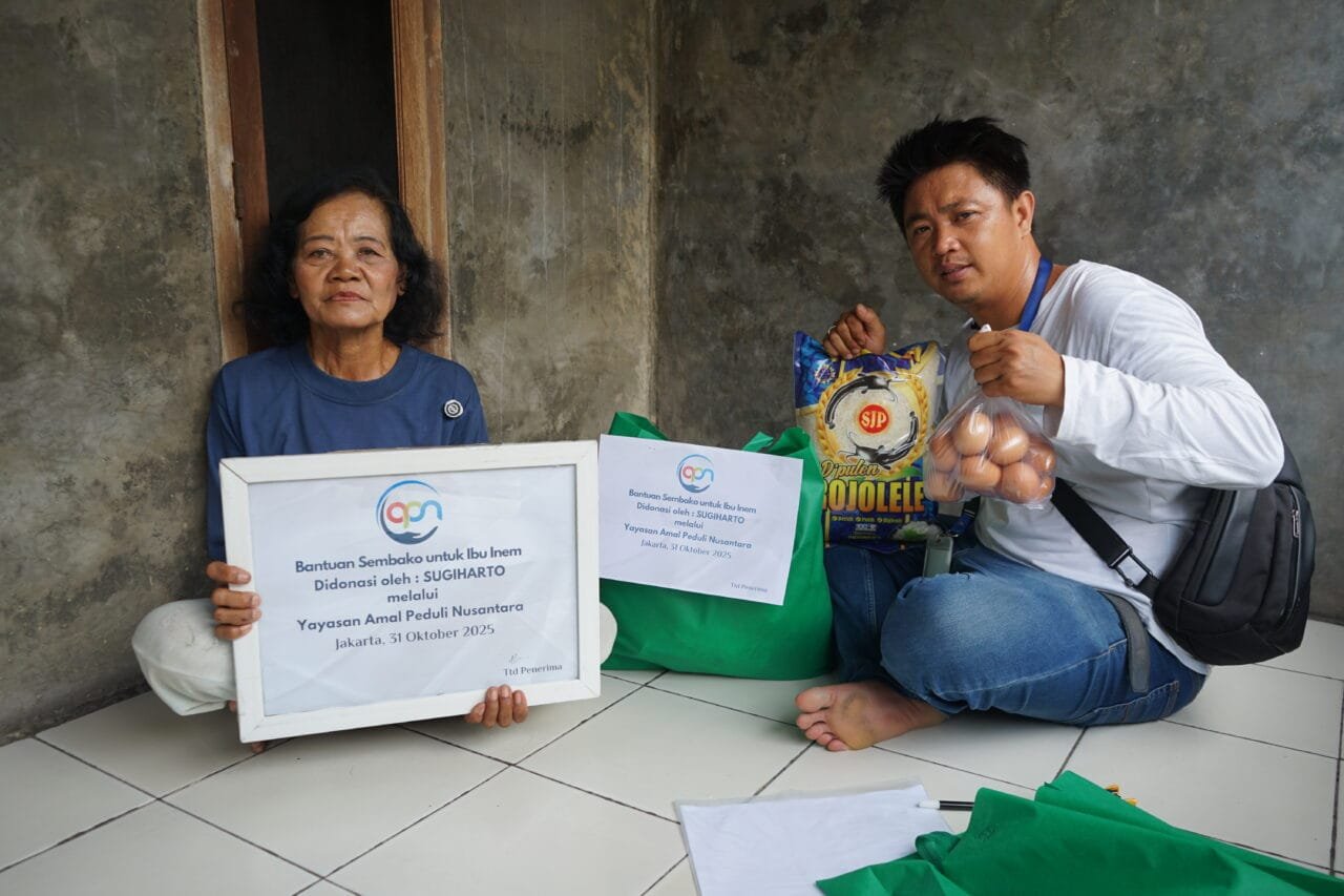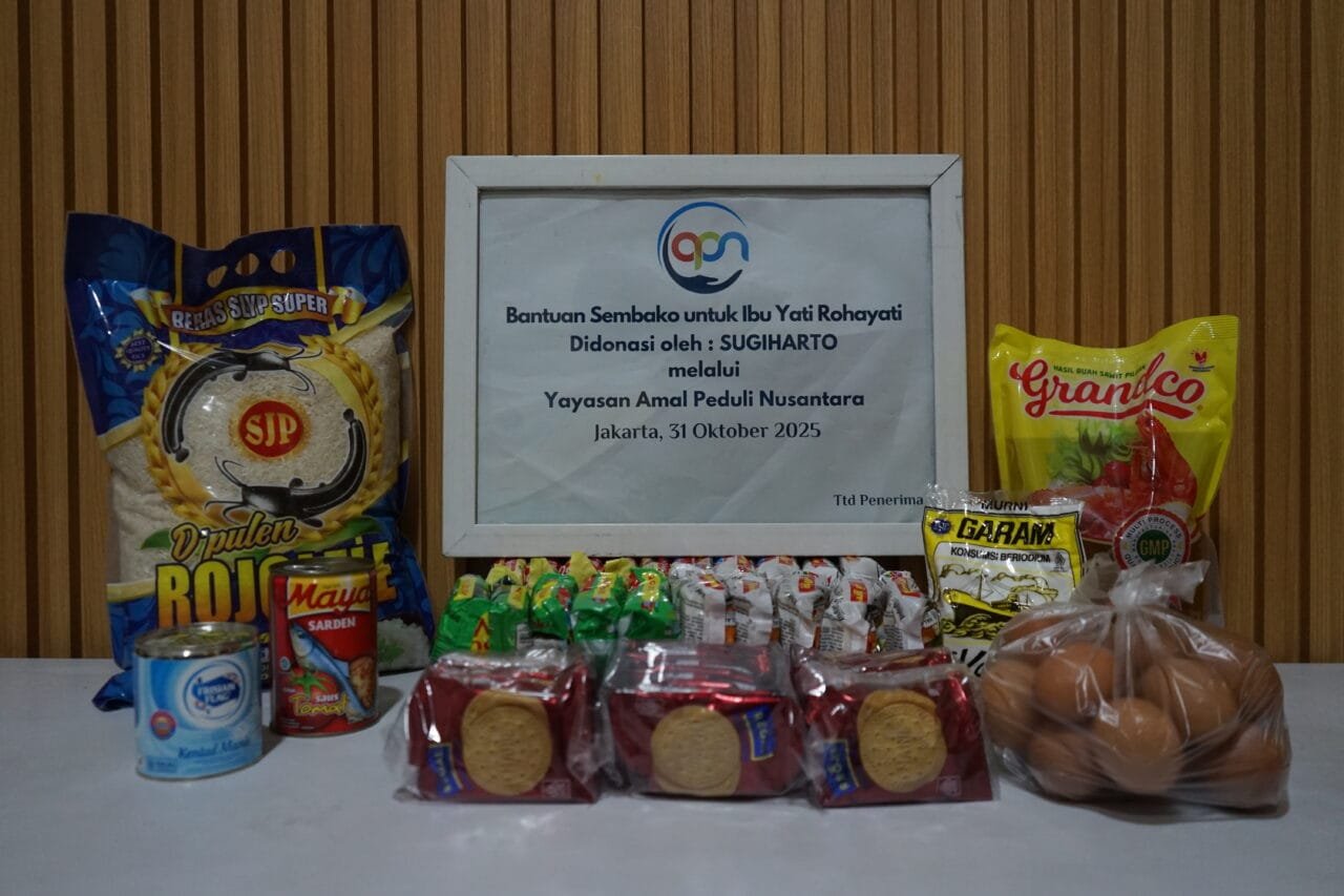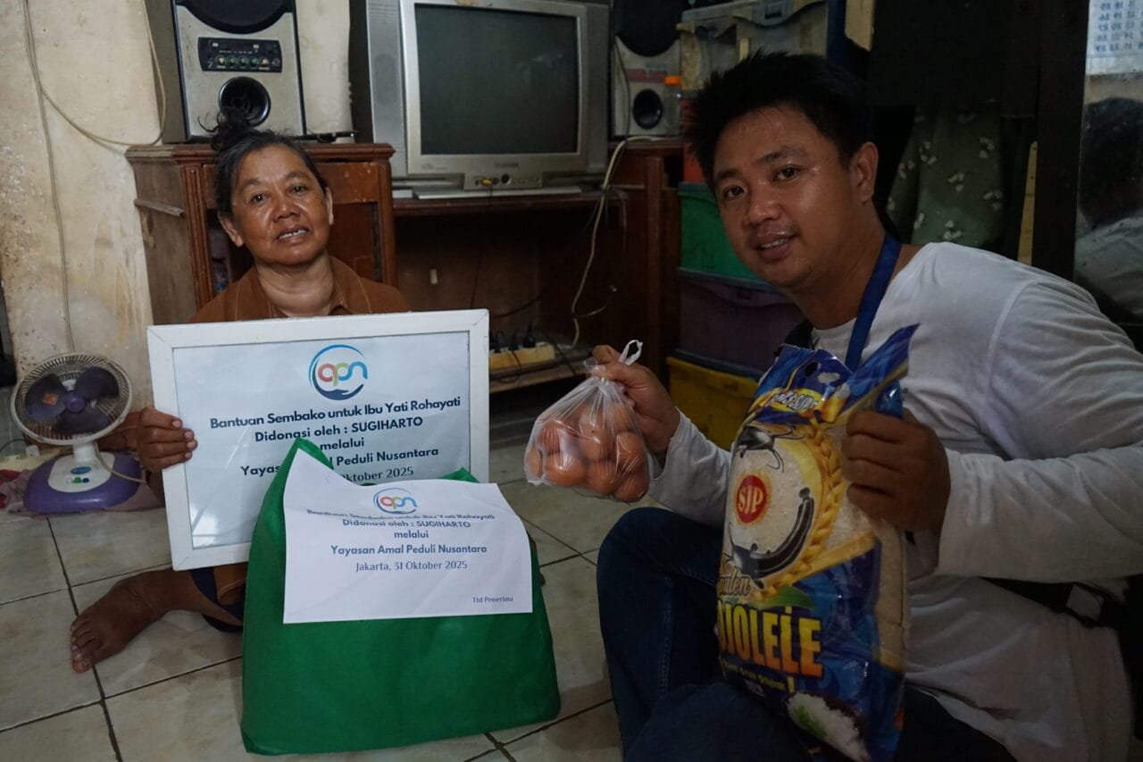 Tangerang, 31 Oktober 2025 — Yayasan Amal Peduli Nusantara kembali menyalurkan bantuan paket sembako kepada dua lansia di wilayah Selapajang, Tangerang.