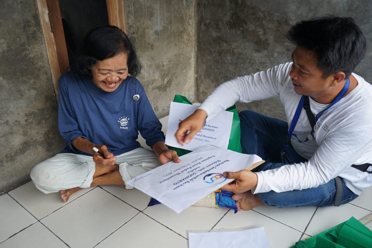 Penerima pertama adalah Ibu Yati Rohayati (67 tahun), yang hidup bersama suaminya, seorang penjual kembang sekaligus penjaga makam. Dengan penghasilan yang tidak menentu, keduanya berjuang untuk bertahan hidup, sementara kelima anak mereka belum memiliki pekerjaan tetap.