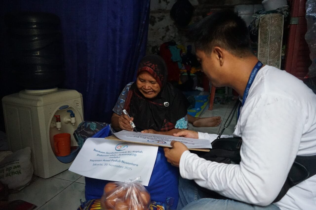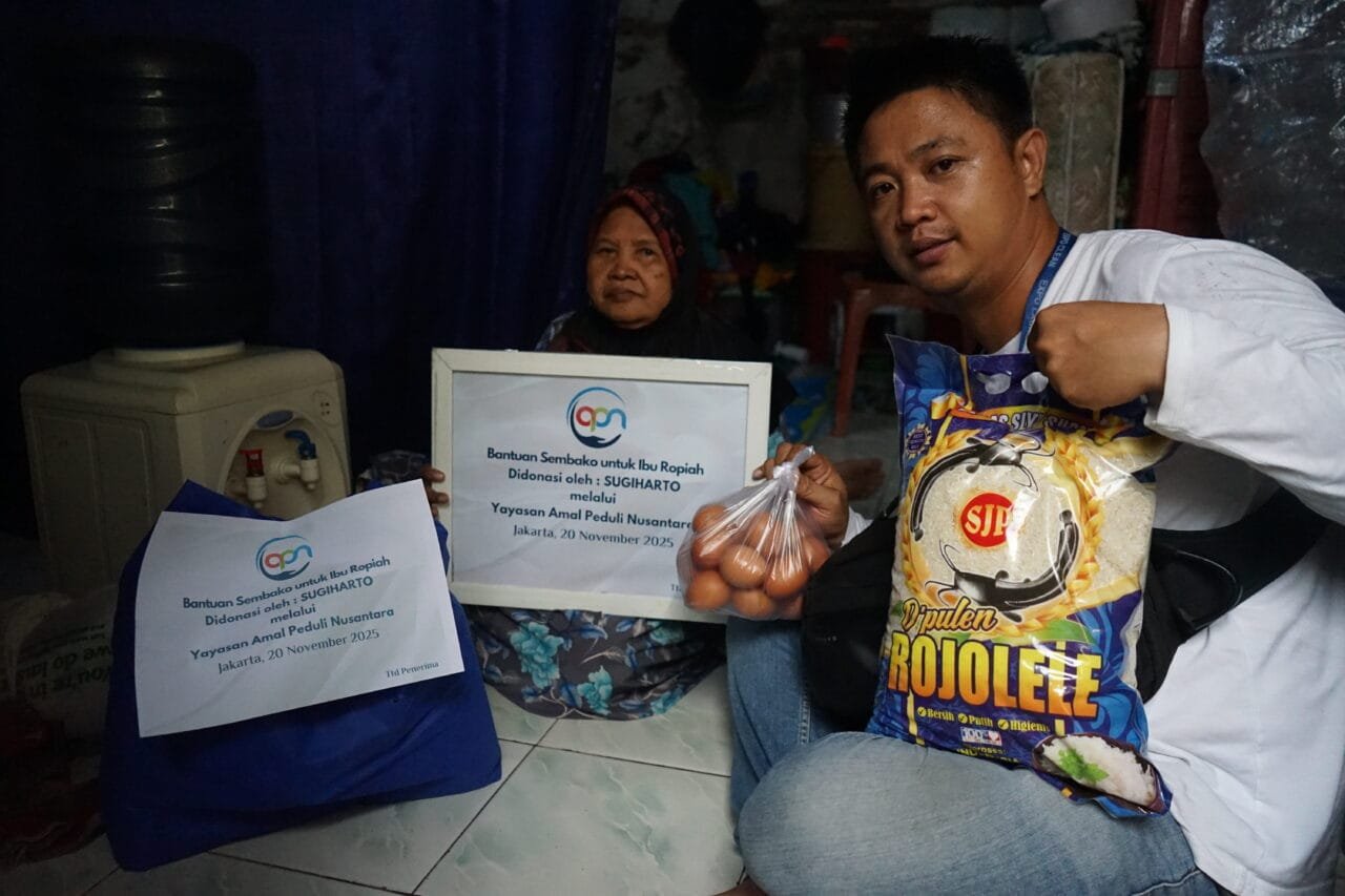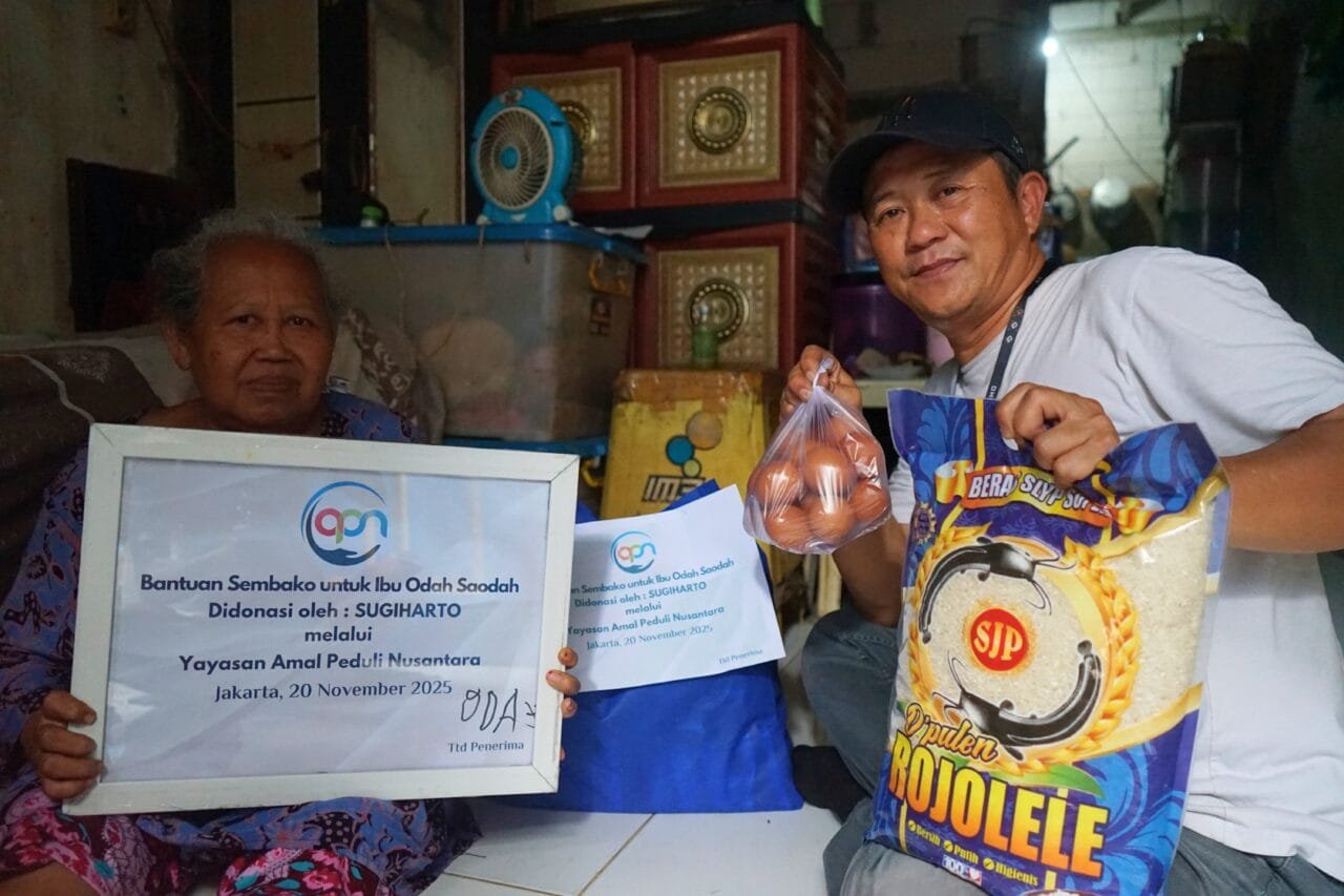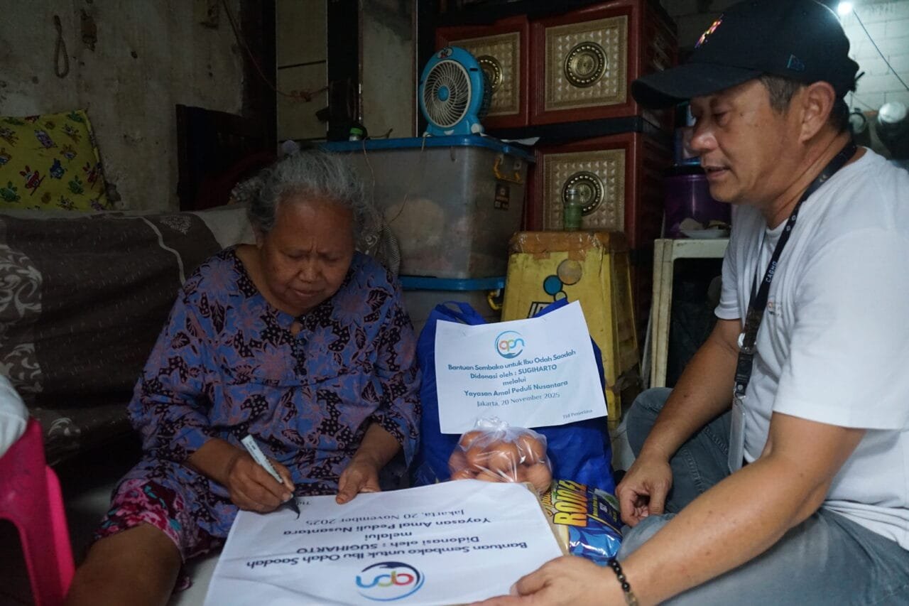 Yayasan Amal Peduli Nusantara kembali menyalurkan bantuan paket sembako kepada tiga lansia yang membutuhkan di wilayah Kertajaya, Penjaringan.