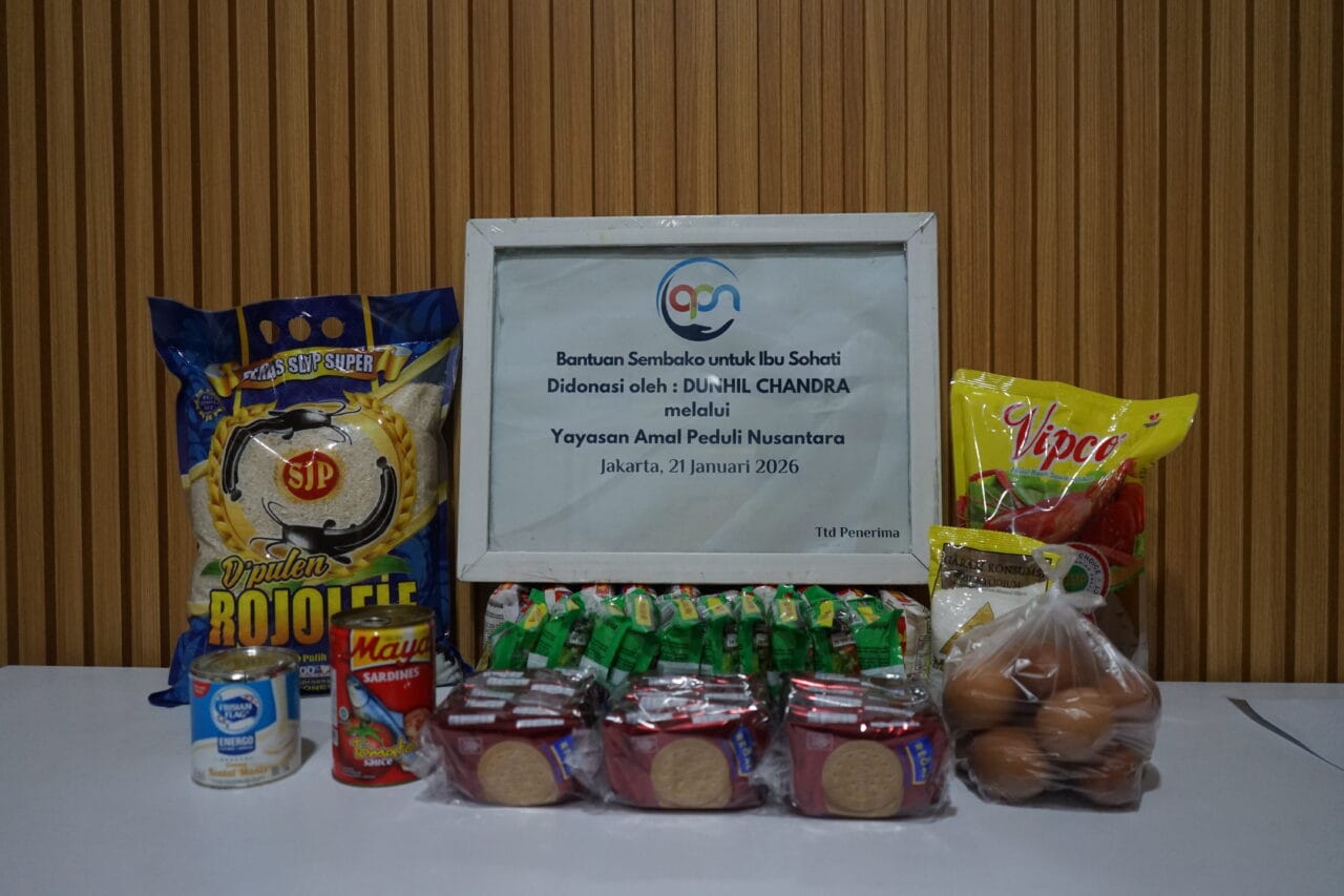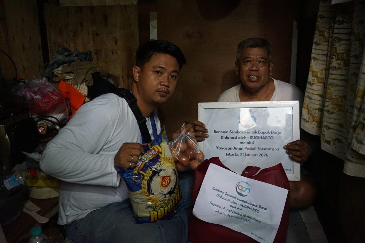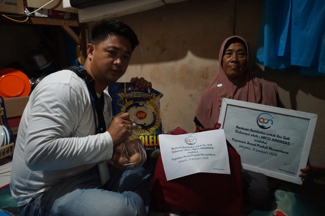 Yayasan Amal Peduli Nusantara menyalurkan bantuan paket sembako kepada para lansia yang membutuhkan. Kali ini, bantuan diberikan kepada tiga lansia yang tinggal di wilayah Muara Karang, Pluit, Jakarta Utara, yang menjalani hidup dalam keterbatasan dan minim dukungan keluarga.