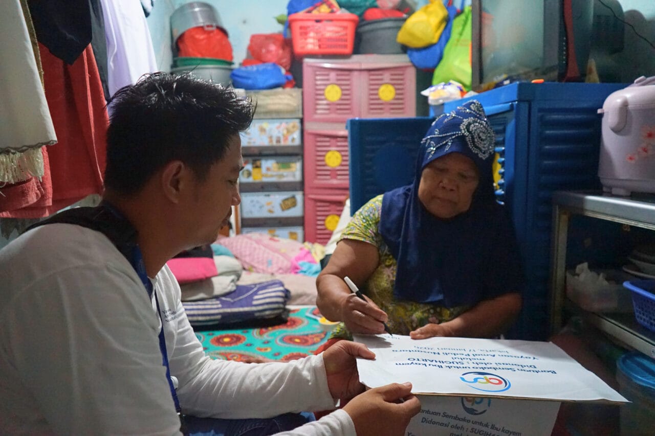 Penerima lainnya adalah Sumini (64 tahun) yang hidup bersama suaminya. Mereka memiliki empat anak yang tinggal jauh dan tidak dapat membantu secara rutin. Untuk memenuhi kebutuhan sehari-hari, Pak Sumini dan suami masih memulung meski kondisi fisik sudah terbatas.