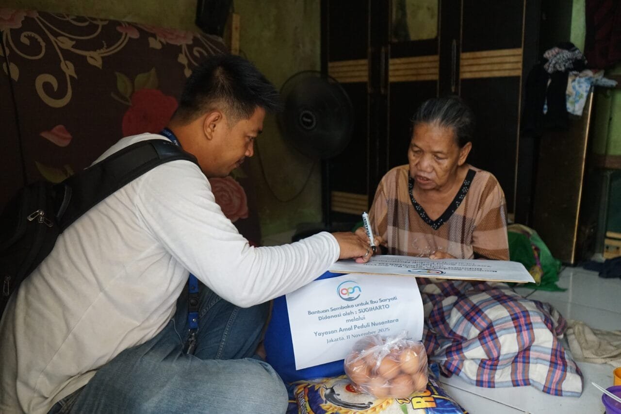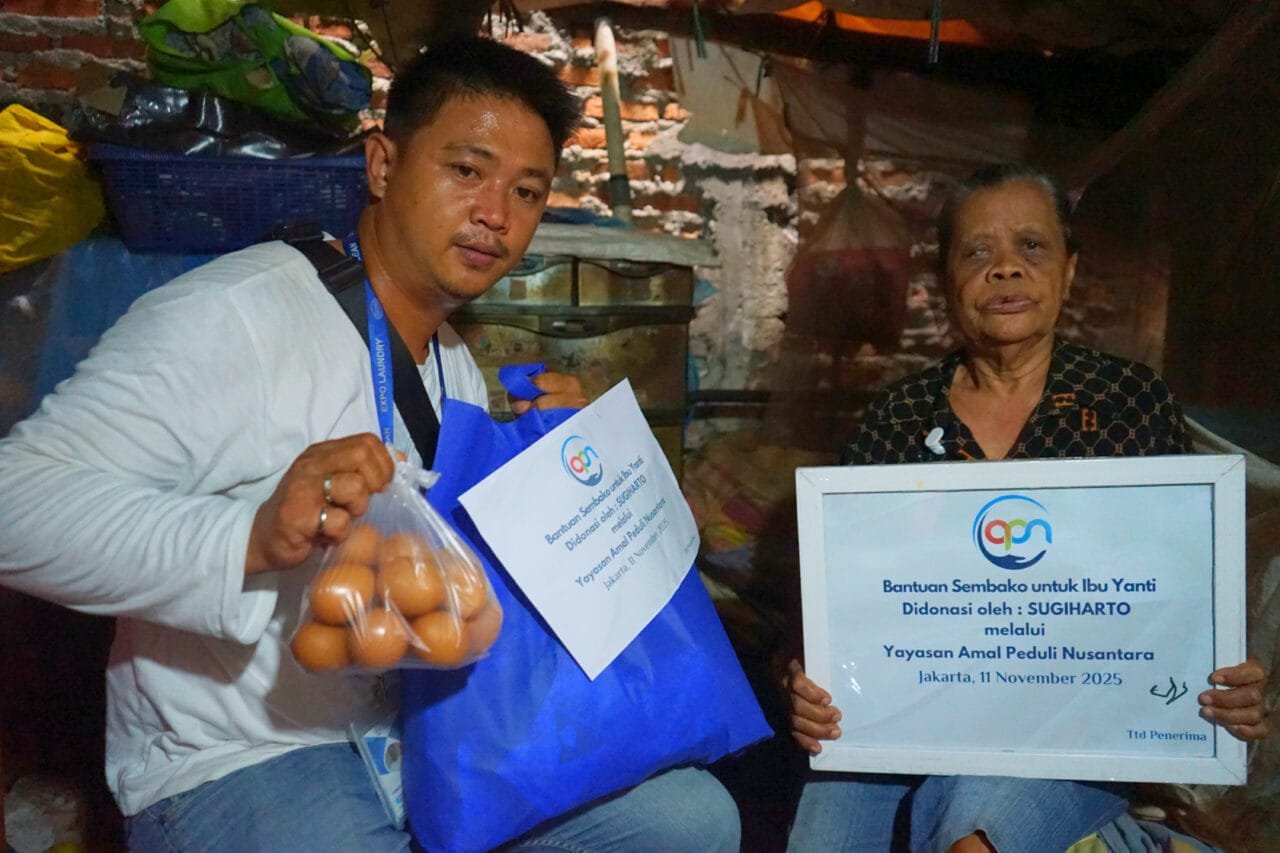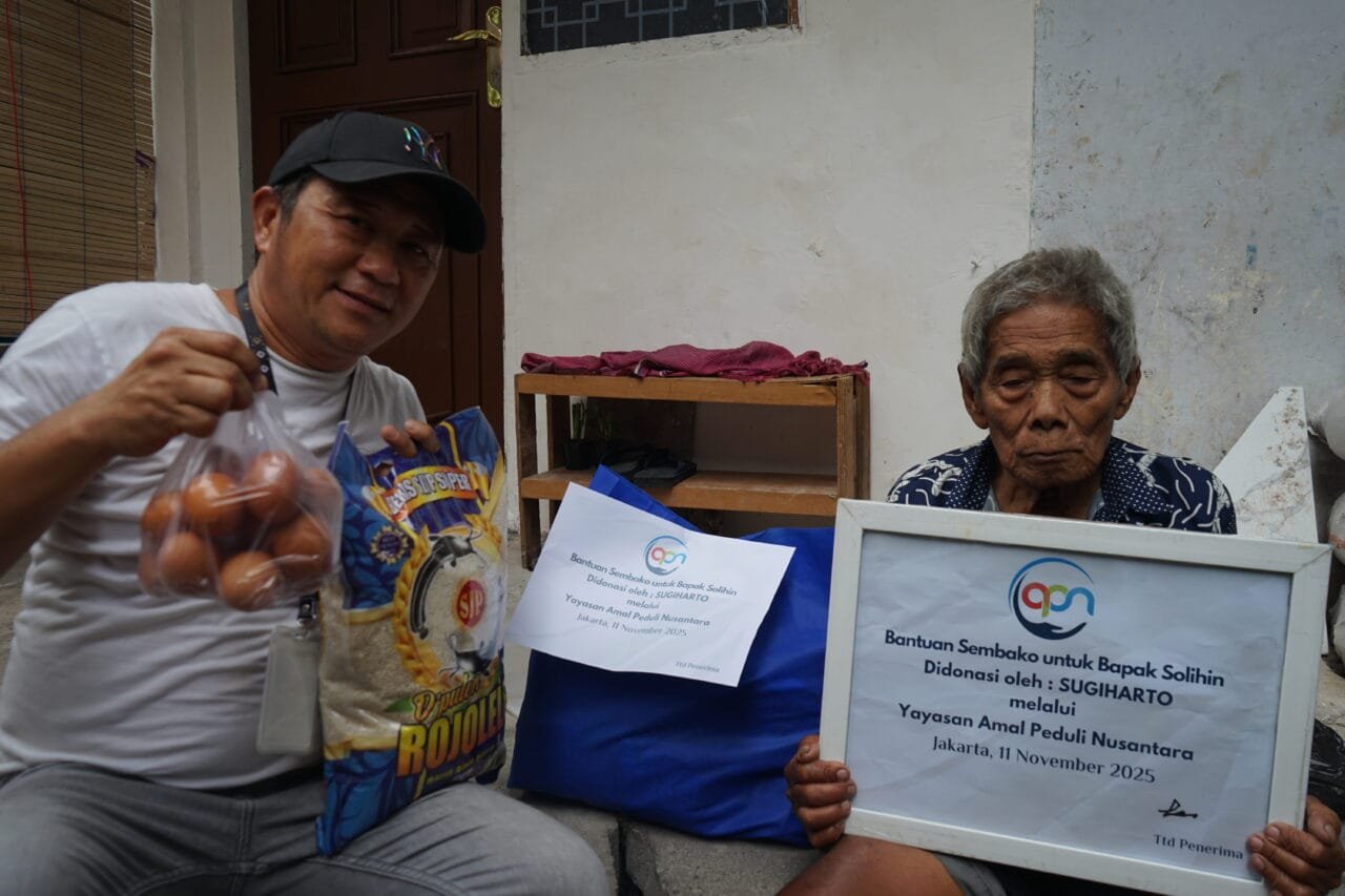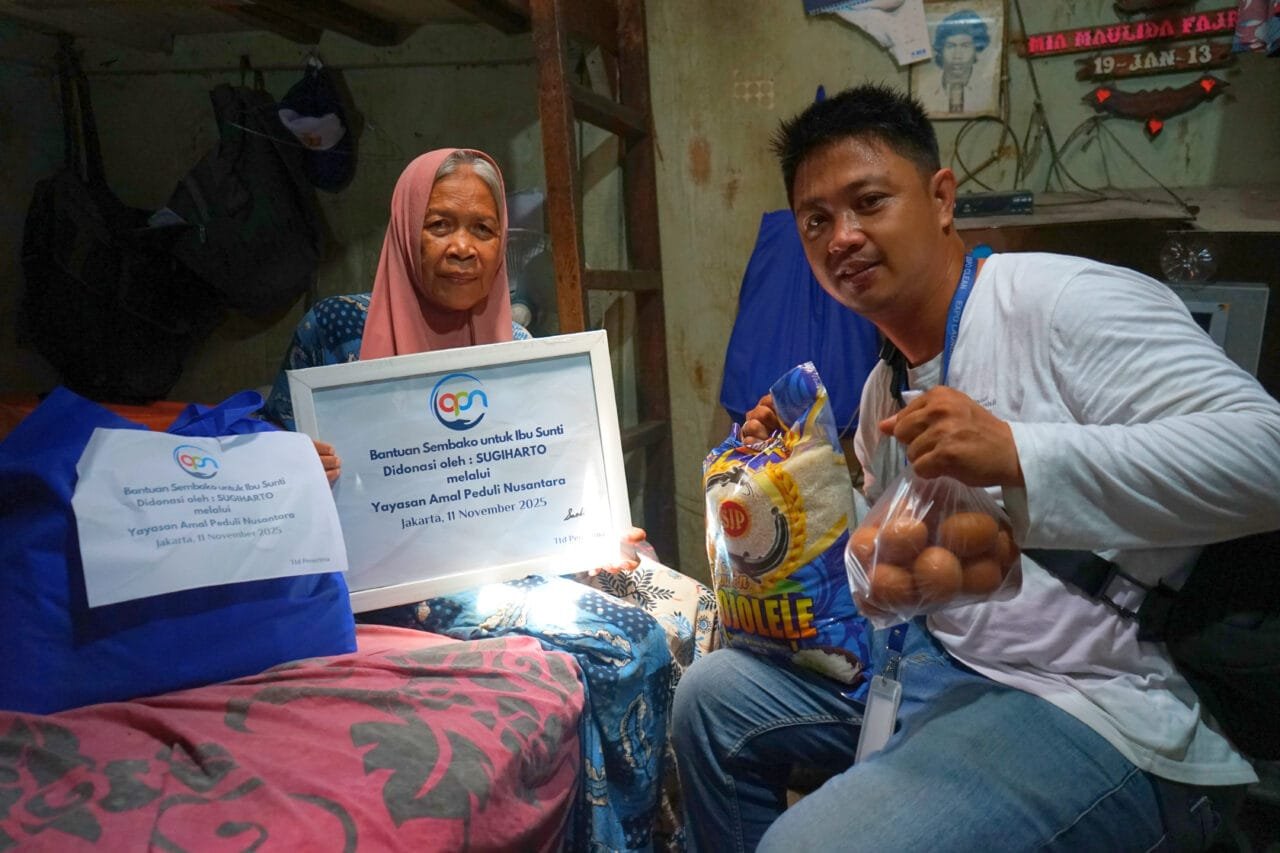 Penjaringan, Jakarta — Dalam langkah nyata kepedulian terhadap sesama, Yayasan Amal Peduli Nusantara kembali menyalurkan paket bantuan sembako untuk membantu para lansia yang membutuhkan di wilayah Jalan Kartajaya, Penjaringan.