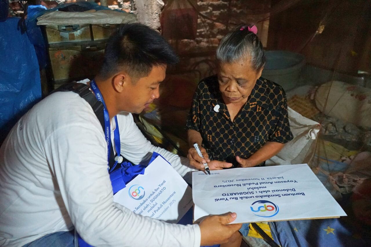 Bantuan ini berupa beras, minyak goreng, mie instan, sarden, susu kental manis, telur, garam, dan biskuit regal — diserahkan langsung kepada lima lansia yang tengah berjuang menjalani hari-hari mereka dengan berbagai keterbatasan.