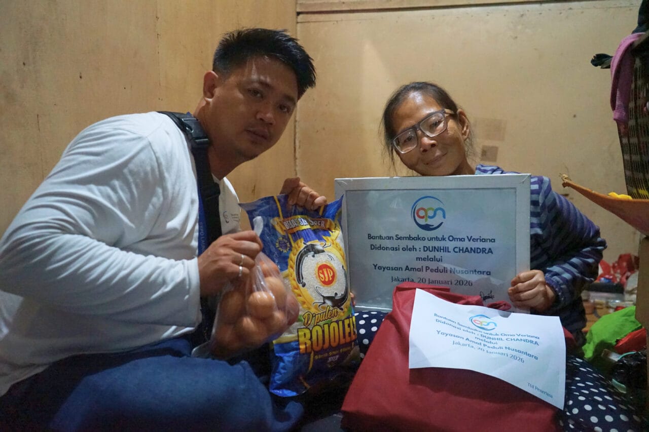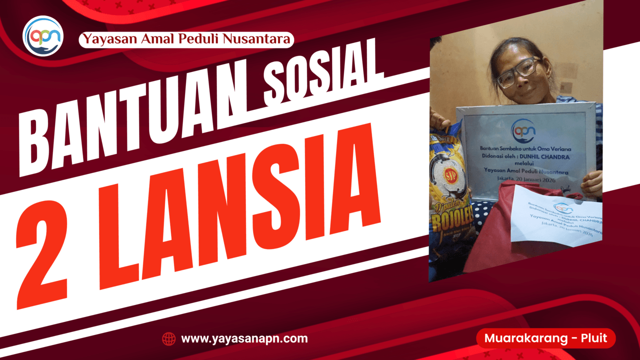 Yayasan Amal Peduli Nusantara menyalurkan bantuan berupa paket sembako kepada dua lansia di wilayah Muara Karang, Jakarta Utara. Bantuan ini diberikan sebagai bentuk kepedulian terhadap kondisi lansia yang hidup dalam keterbatasan ekonomi dan dukungan keluarga yang minim.