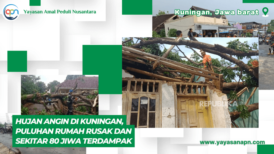 Hujan Angin Terjang Kuningan, Puluhan Rumah Rusak dan sekitar 80 jiwa terdampak
