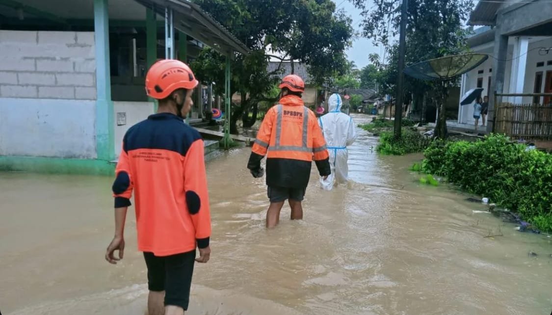 ( Dokumentasi : Pihak BPBDPK Kabupaten Pandeglang sedang melakukan monitoring terhadap kondisi banjir di beberapa kampung di Desa Idaman, Kecamatan Patia, Kabupaten Pandeglang , Foto bersumber dari situs Tangselpos )