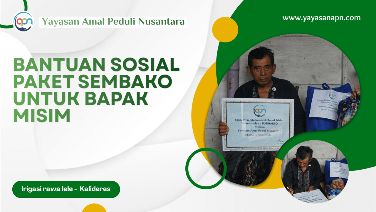 Yayasan Amal Peduli Nusantara kembali menyalurkan bantuan sembako kepada masyarakat yang membutuhkan. Kali ini, bantuan diberikan kepada seorang lansia bernama Misim (66 tahun), yang masih harus bekerja di usianya yang tidak lagi muda.