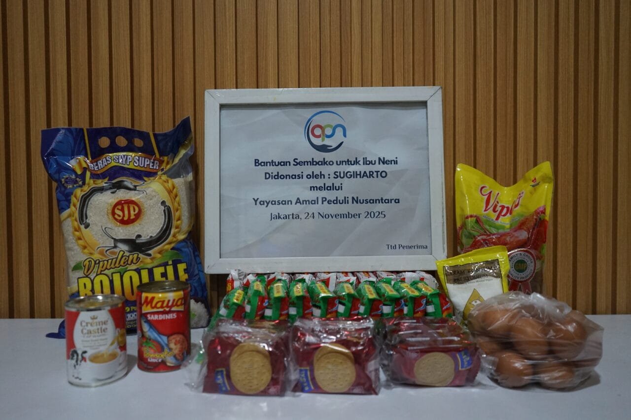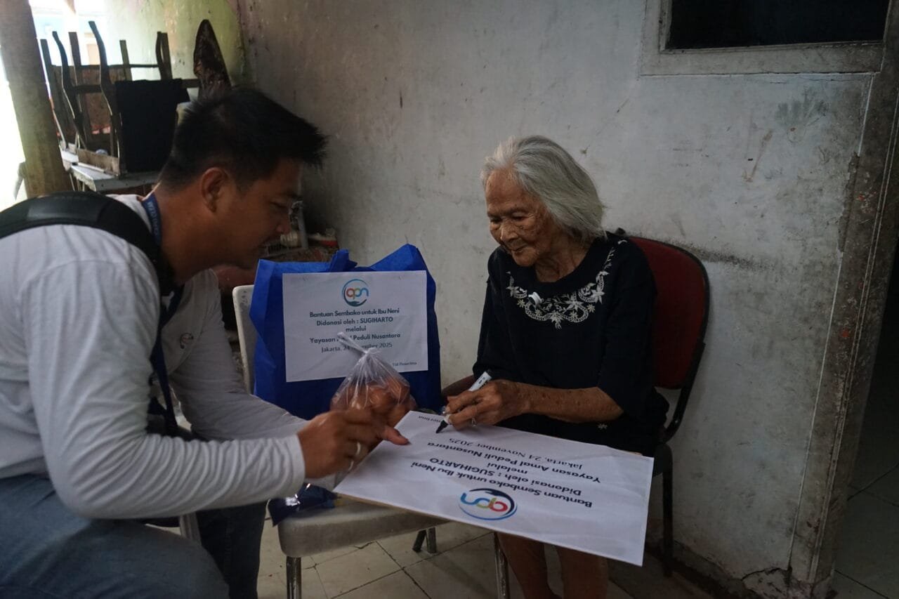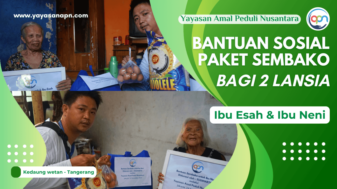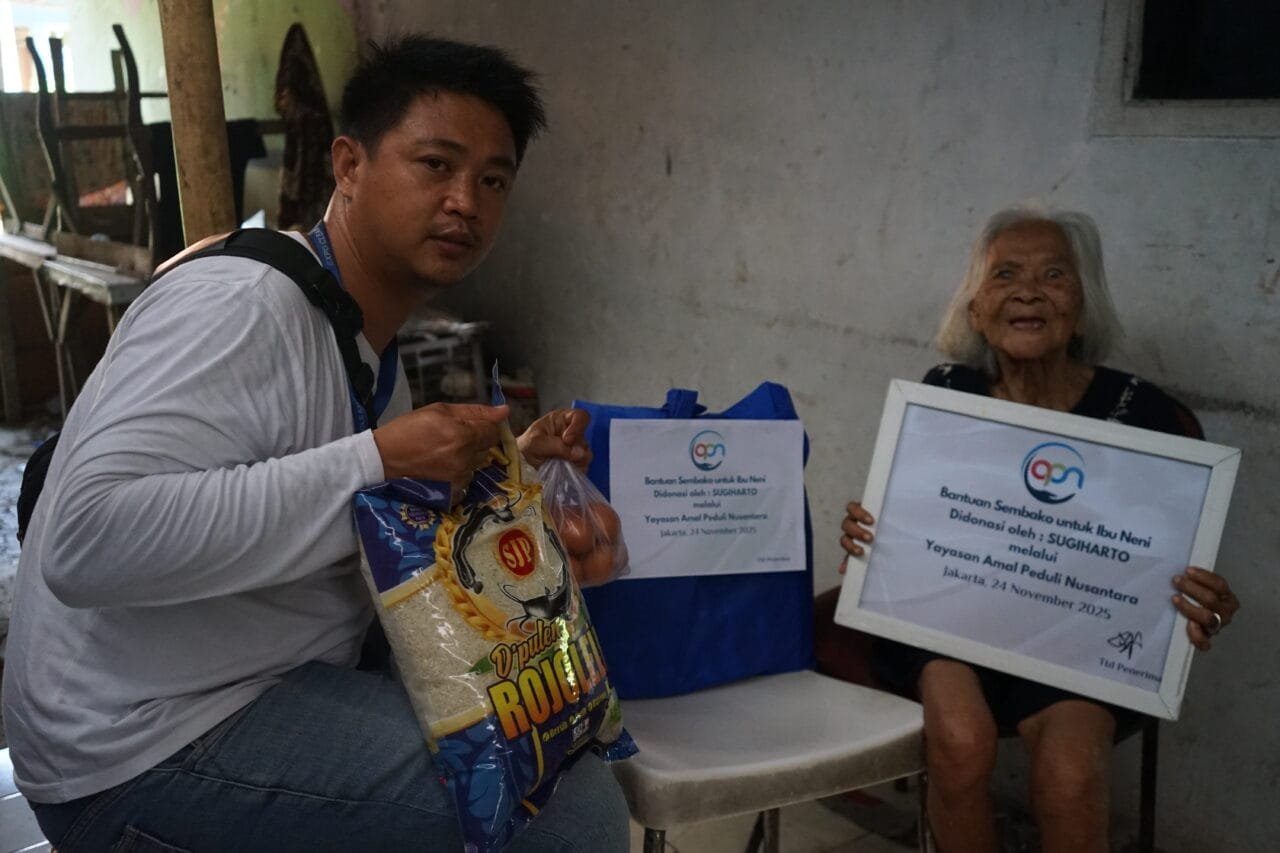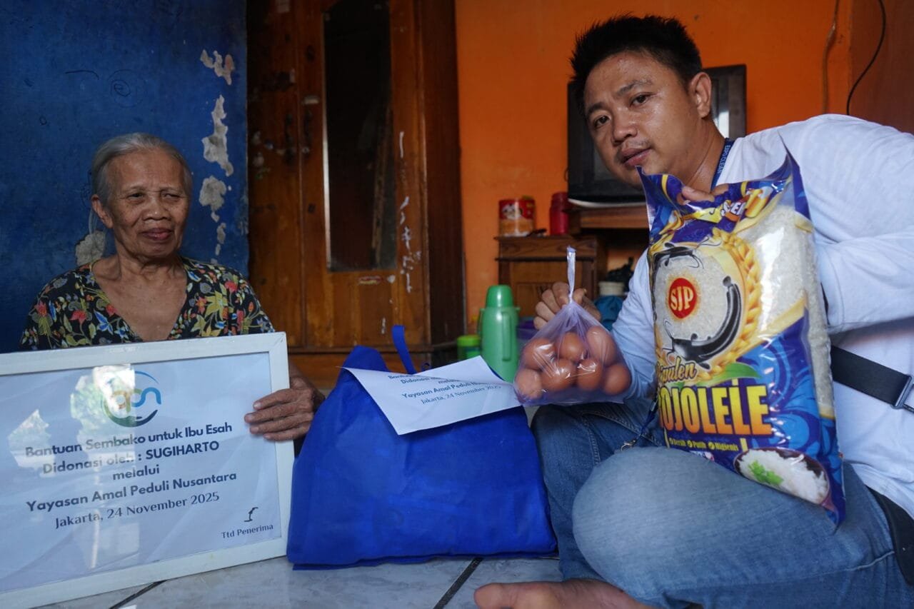 Yayasan Amal Peduli Nusantara kembali menyalurkan bantuan paket sembako kepada warga yang membutuhkan. Kali ini, bantuan diberikan kepada dua lansia di wilayah Kedaung Wetan sebagai bentuk kepedulian terhadap mereka yang hidup dalam keterbatasan.