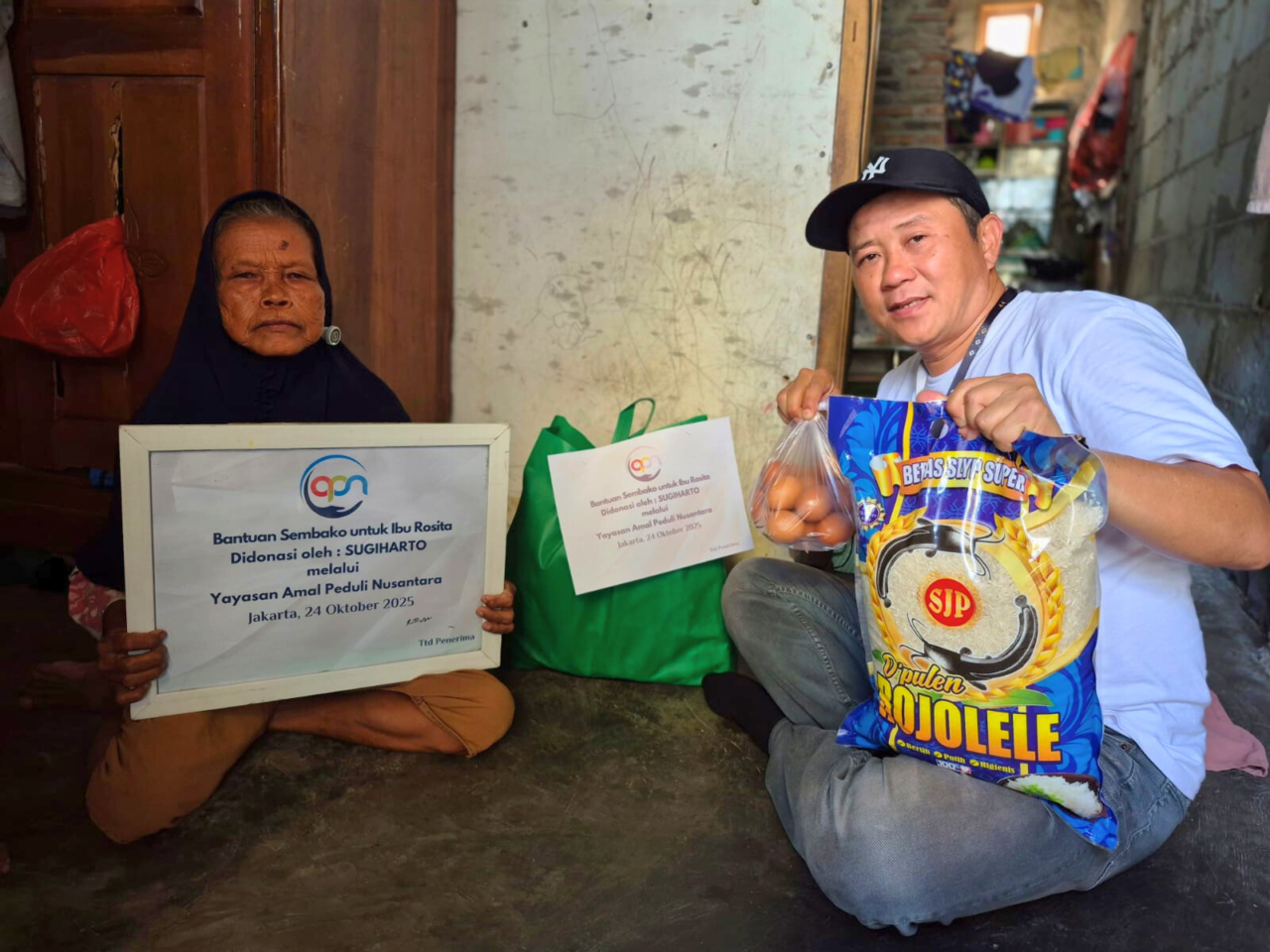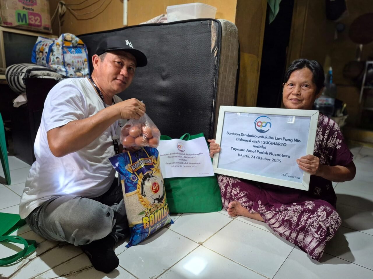 Tangerang – Yayasan Amal Peduli Nusantara kembali menunjukkan komitmennya dalam mendampingi masyarakat prasejahtera, khususnya para lansia yang masih berjuang memenuhi kebutuhan hidup sehari-hari. Tim relawan yayasan melakukan penyerahan bantuan paket sembako kepada dua lansia di wilayah Rawa Rotan, Selapajang, Tangerang.