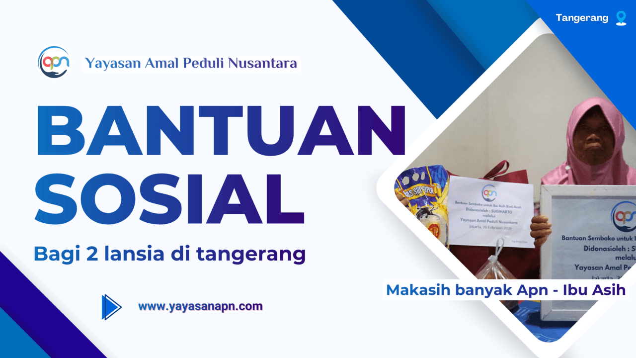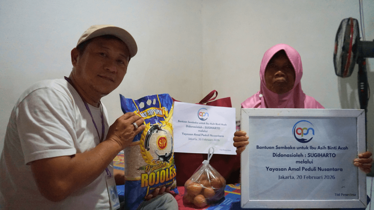 Yayasan Amal Peduli Nusantara kembali menyalurkan bantuan sembako kepada warga yang membutuhkan. Kali ini, bantuan diberikan kepada dua lansia di wilayah Tangerang yang selama ini hidup dalam kondisi ekonomi yang sangat terbatas.