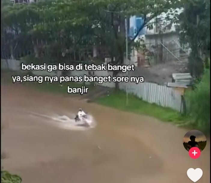 ( Dokumentasi : Banjir di salah 1 area bekasi, Foto bersumber dari tangkapan layar tiktok patirketarketir )
