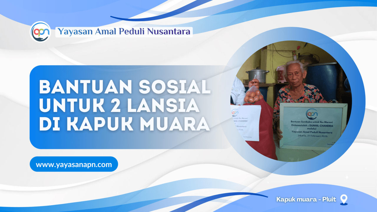 Yayasan Amal Peduli Nusantara kembali menyalurkan bantuan sembako kepada dua lansia di Kapuk Muara, Jakarta Utara. Bantuan ini diberikan sebagai bentuk kepedulian terhadap warga lanjut usia yang hidup dalam kondisi ekonomi sulit.