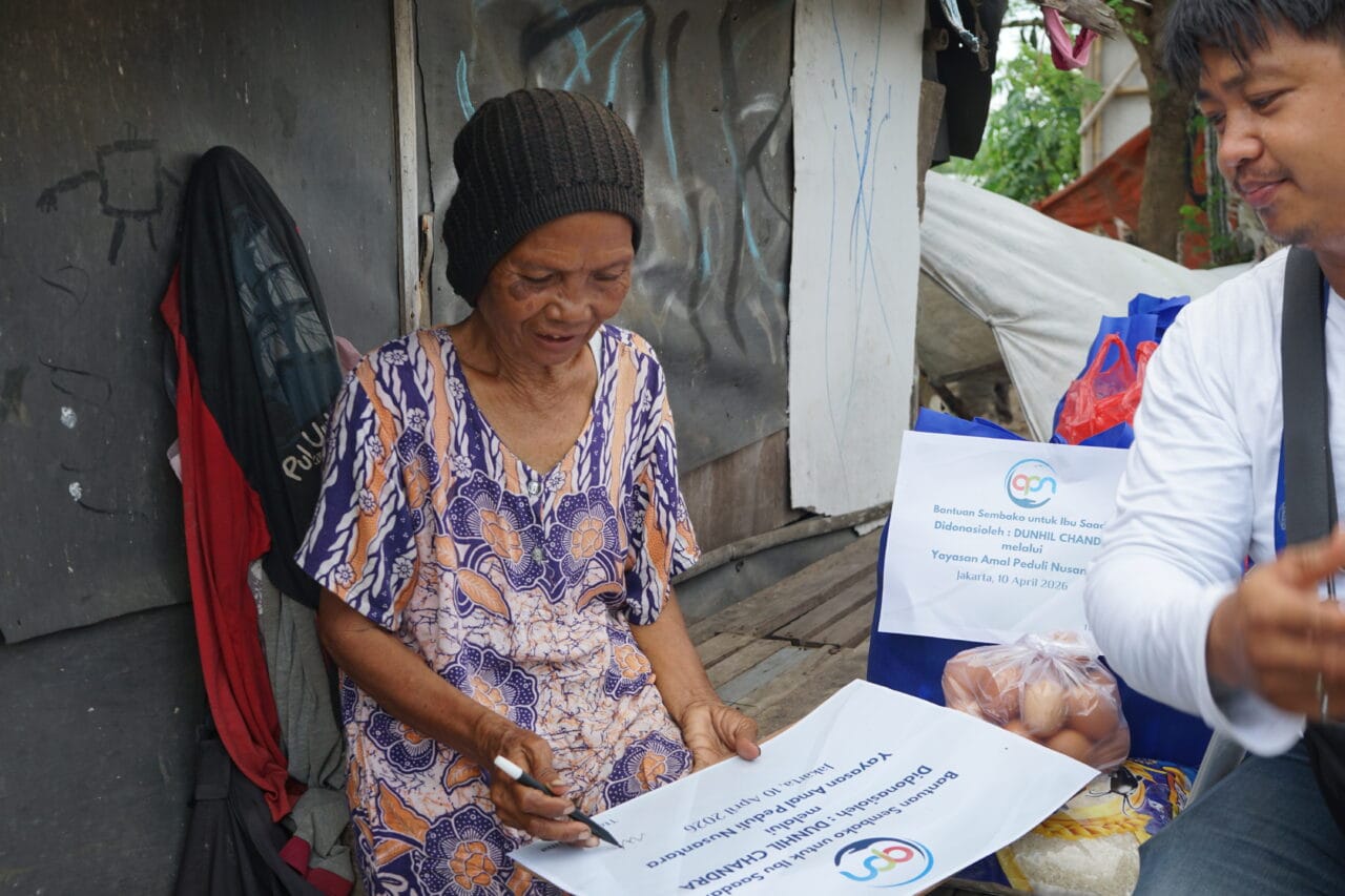 Penyerahan bantuan dilakukan secara langsung oleh tim Yayasan Amal Peduli Nusantara agar bantuan dapat diterima dengan baik oleh para penerima. Kehadiran tim juga menjadi bentuk perhatian dan dukungan bagi para lansia yang sedang menghadapi kondisi hidup yang berat.