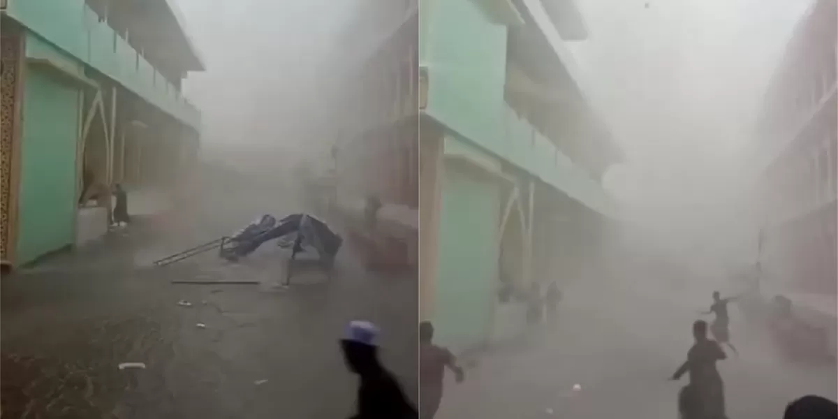 Menurut laporan, hujan deras yang turun secara tiba-tiba diikuti dengan tiupan angin kuat mengguncang Pondok Pesantren Nurul Islam di Desa Jabontegal, Kecamatan Pungging. Dalam rekaman visual, sejumlah santri terlihat panik dan berlarian mencari tempat aman saat angin kencang menerpa kompleks pondok.