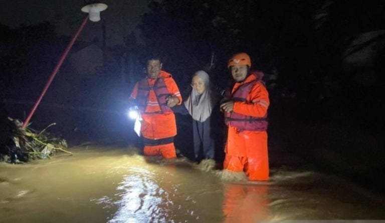 ( Dokumentasi :Tim Sar mengevakuasi warga saat banjir, foto bersumber dari situs antara)