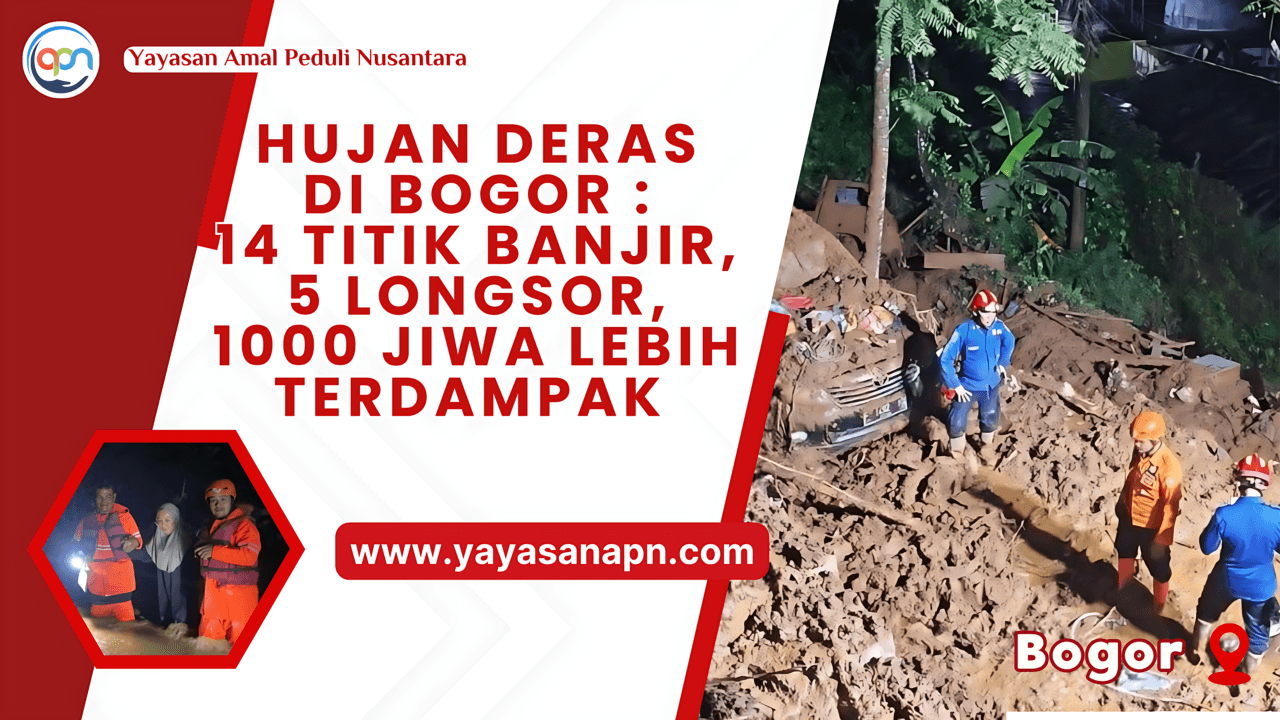 Kami dari Yayasan Amal Peduli Nusantara turut prihatin atas bencana yang menimpa saudara-saudara kita di wilayah Bogor. Kami berharap : banjir bisa segera surut , Tidak ada bencana susulan, dan penambahan korban maupun kerusakan. Serta, dukungan dari pemerintah dan masyarakat luas segera sampai ke warga terdampak.