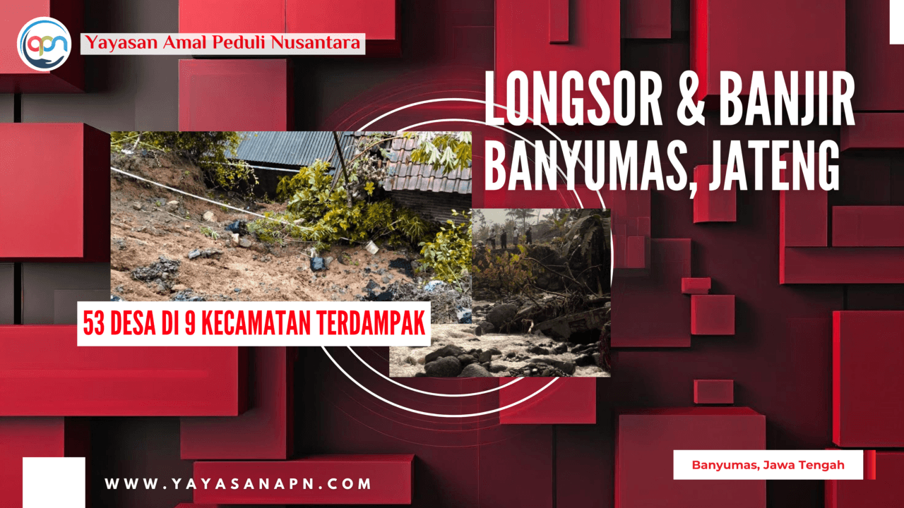 Yayasan Amal Peduli Nusantara menyampaikan turut prihatin atas setiap warga yang terdampak banjir dan longsor di wilayah banyumas , jawa tengah. Kami juga berharap tidak terjadi bencana susulan atau penambahan korban kerusakan atau korban jiwa.