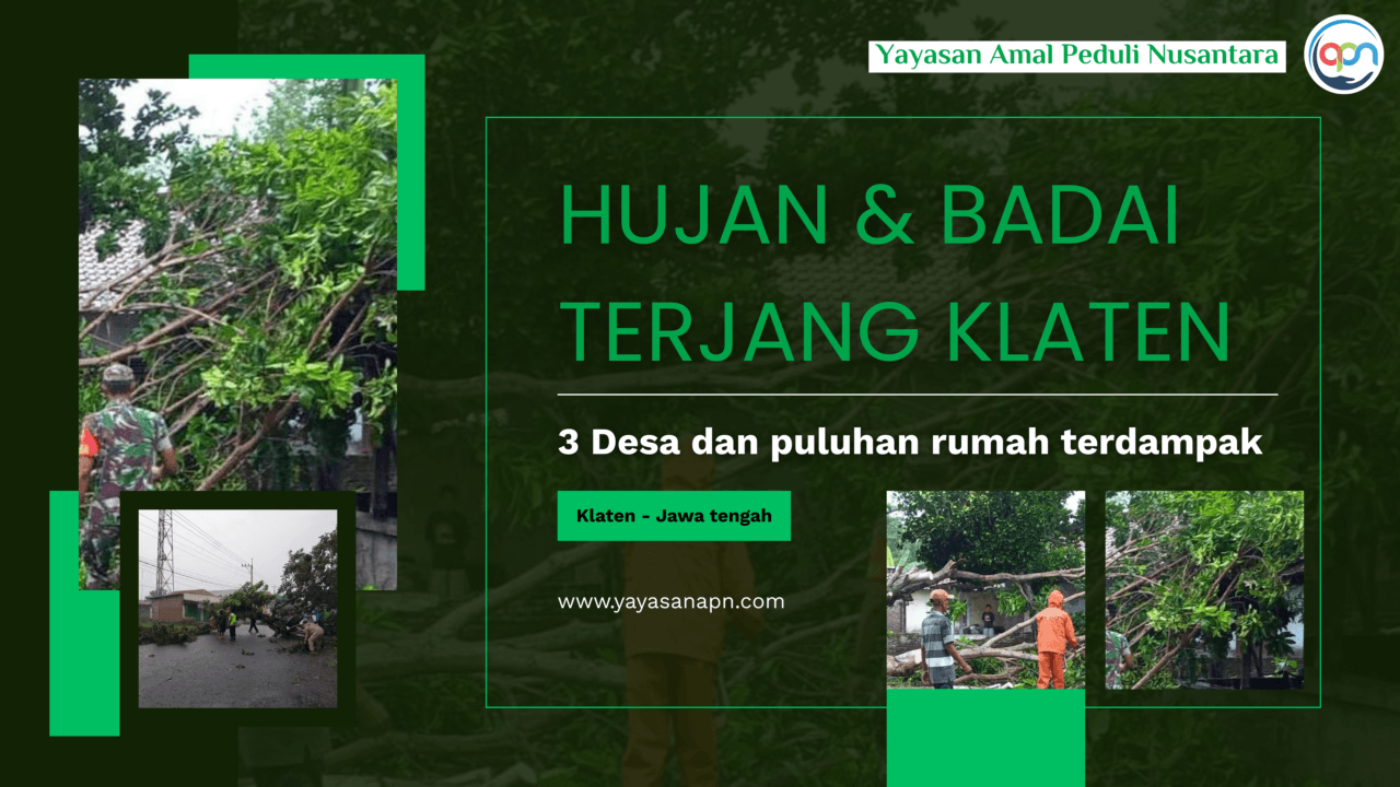 Yayasan Amal Peduli Nusantara menyampaikan turut prihatin atas musibah yang dialami masyarakat Kabupaten Klaten. Kami mendoakan yang terbaik bagi seluruh warga terdampak, serta berharap proses pemulihan berjalan lancar dan tidak terjadi kejadian serupa di kemudian hari.