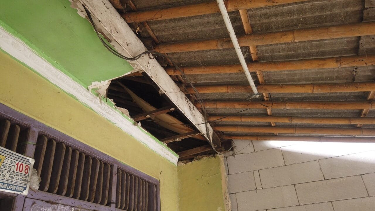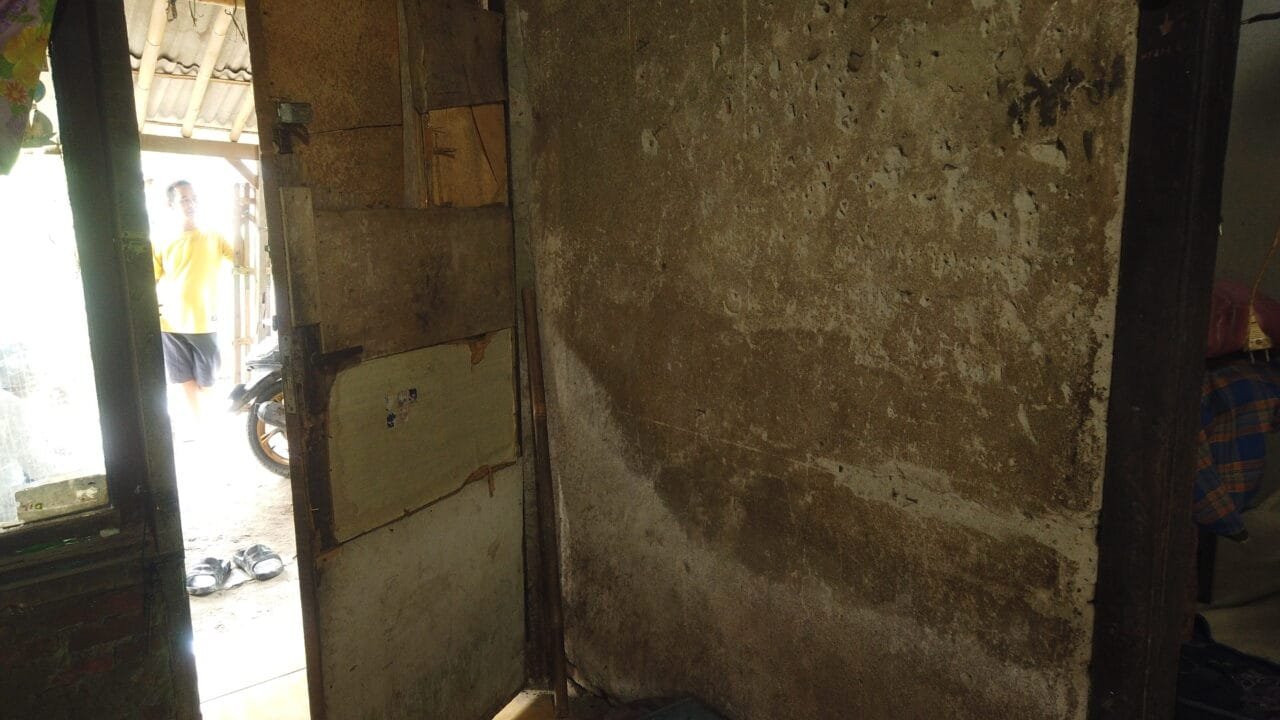 ( Dokumentasi : Kondisi atap rumah, tembok dan pintu yang akan diperbaiki )