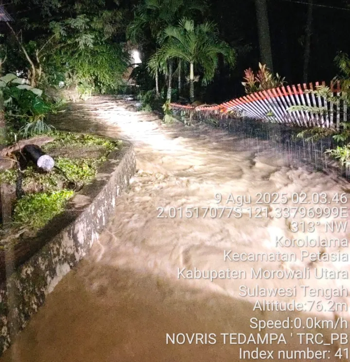 9 Agustus 2025, Pada pukul 02.00 WITA, derasnya hujan memaksa Sungai Laa meluap dan membanjiri Desa Korololama di Kecamatan Petasia, Morowali Utara. Tidak kurang dari 58 kepala keluarga—atau 232 jiwa—terjebak oleh ketinggian air hingga 50 cm yang menyapu permukiman mereka.