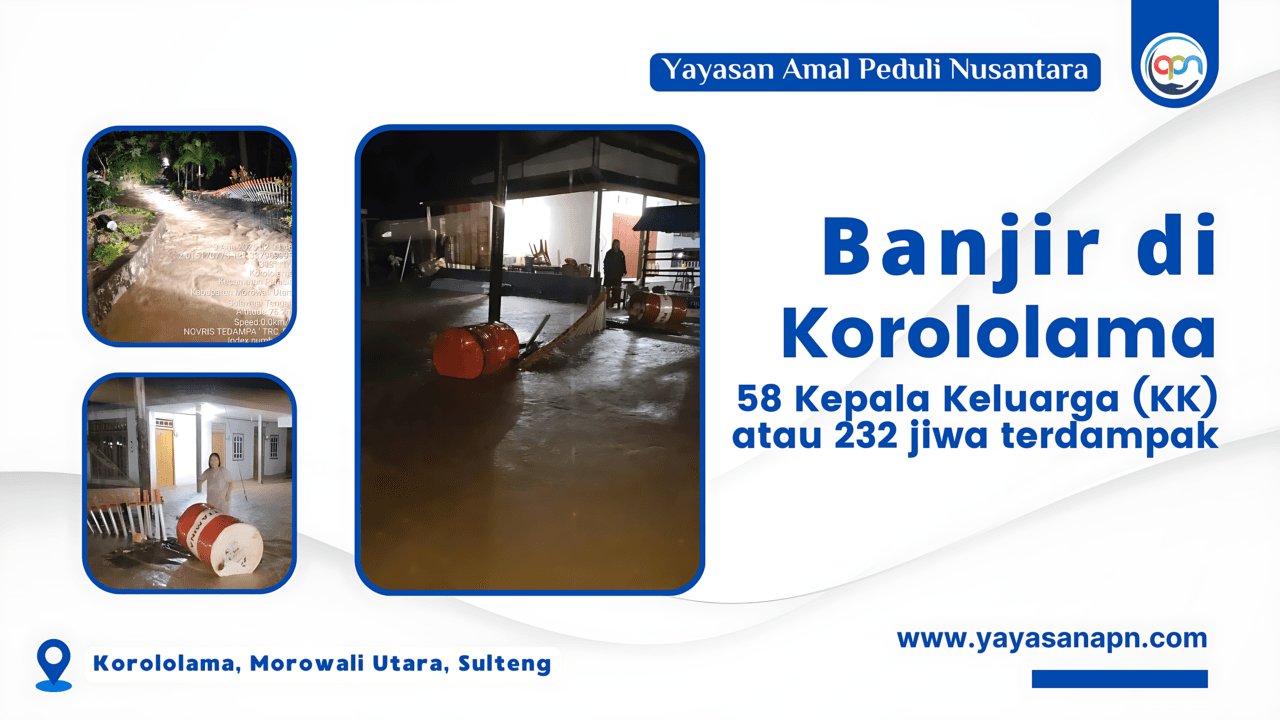 Kami dari Yayasan Amal Peduli Nusantara turut prihatin atas bencana yang menimpa saudara-saudara kita di wilayah Korololama. Kami berharap : banjir bisa segera surut , Tidak ada bencana lainnya, dan penambahan korban ataupun kerusakan. Serta, adanya dukungan dari pemerintah bisa segera sampai ke warga terdampak.