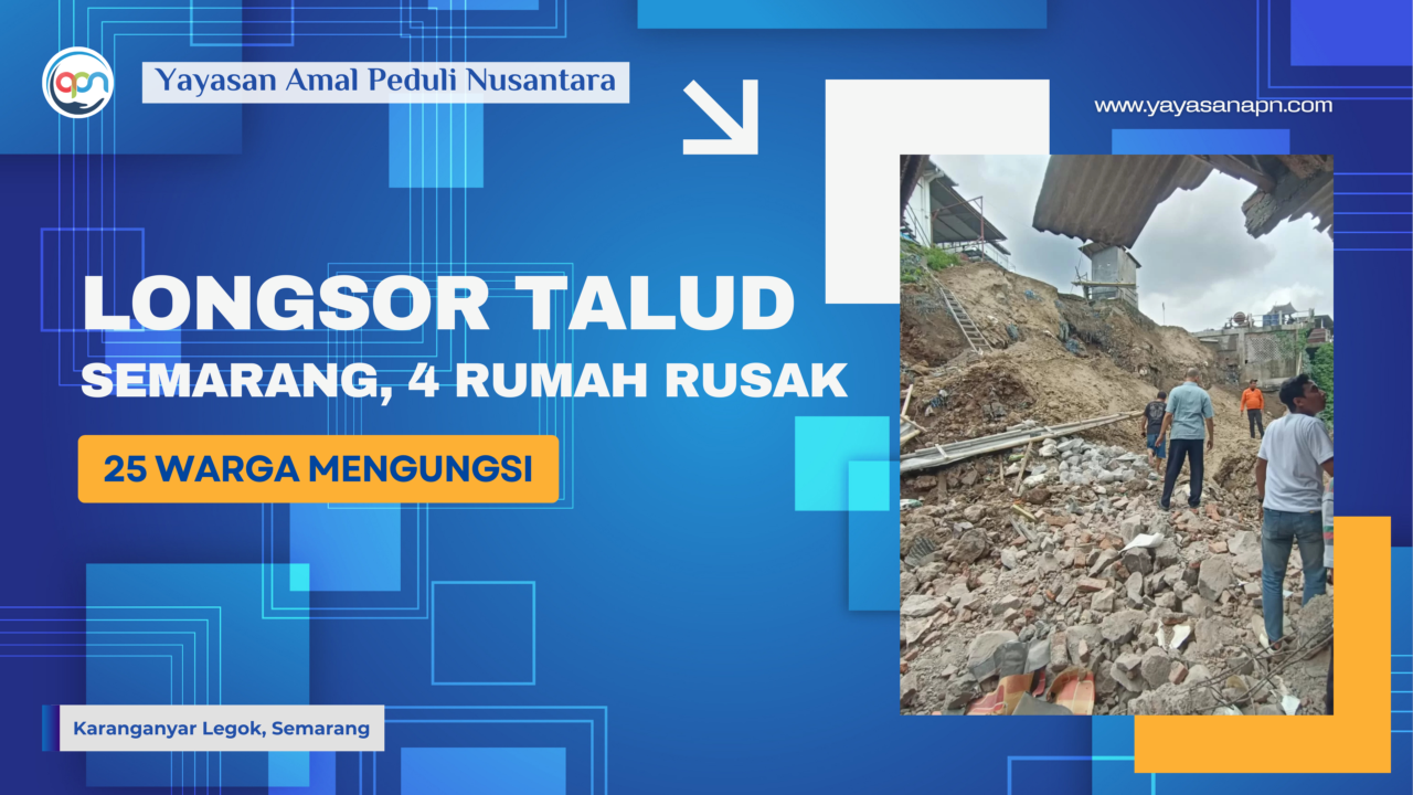 Yayasan Amal Peduli Nusantara menyampaikan turut prihatin atas setiap warga yang terdampak longsor talud pabrik es di karanganyar, legok, semarang. Kami juga berharap tidak terjadi bencana susulan atau penambahan korban kerusakan atau korban jiwa.