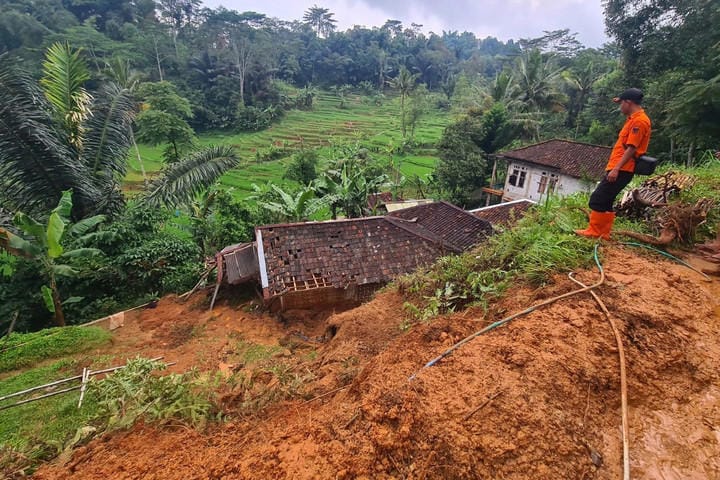 ( Dokumentasi : Tanah longsor menerjang dan merusak bangunan di Desa Camapakawarna, Kecamatan Campakamulya, Kabupaten Cianjur, Jawa Barat, Selasa (3/2/2026), Foto bersumber dari BPBD )
