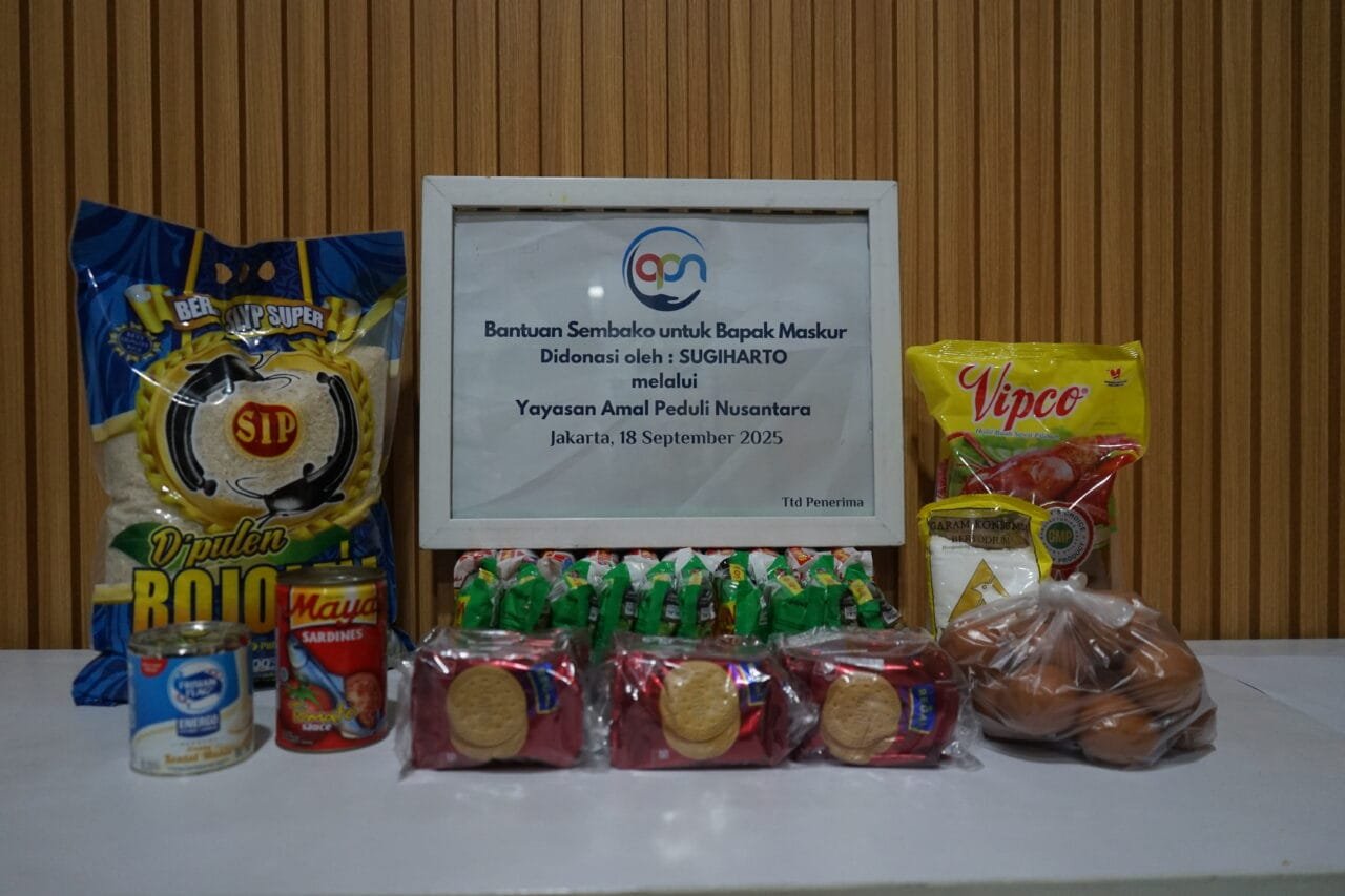 Bantuan yang diberikan berupa beras, minyak goreng, mie instan, sarden, susu kental manis, telur, garam, dan biskuit regal – kebutuhan dasar yang sangat berarti untuk memenuhi makan sehari-hari.