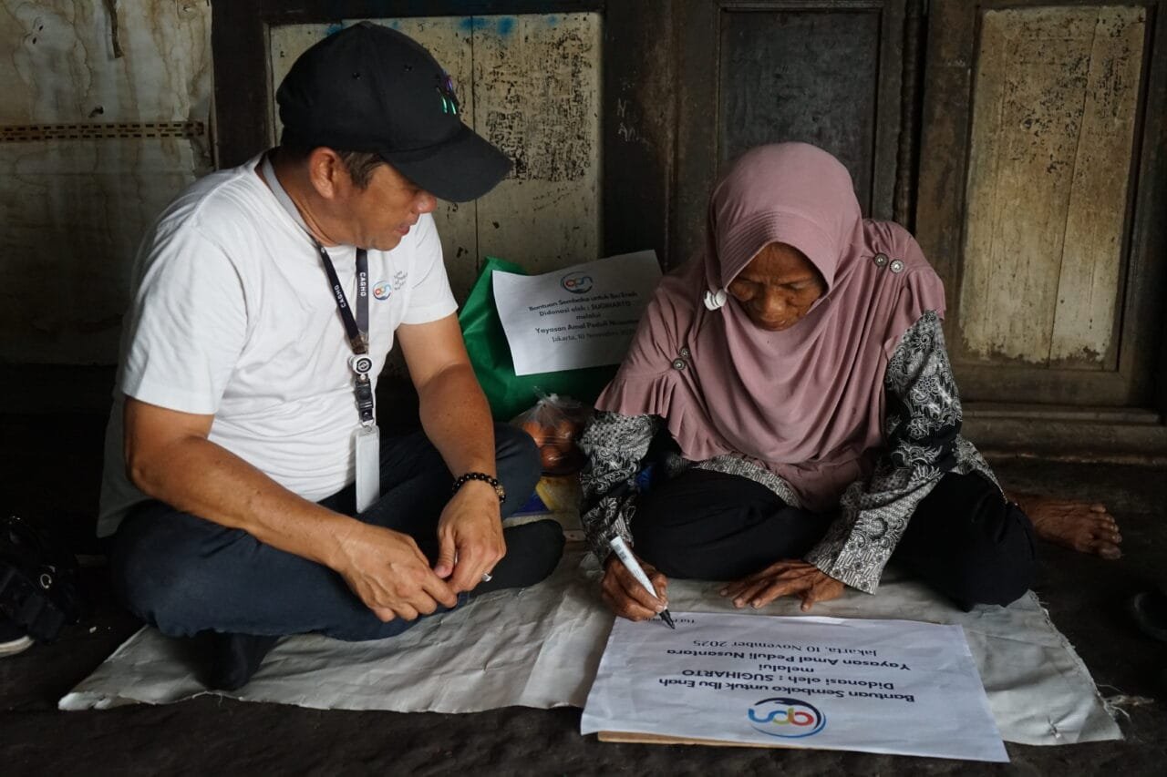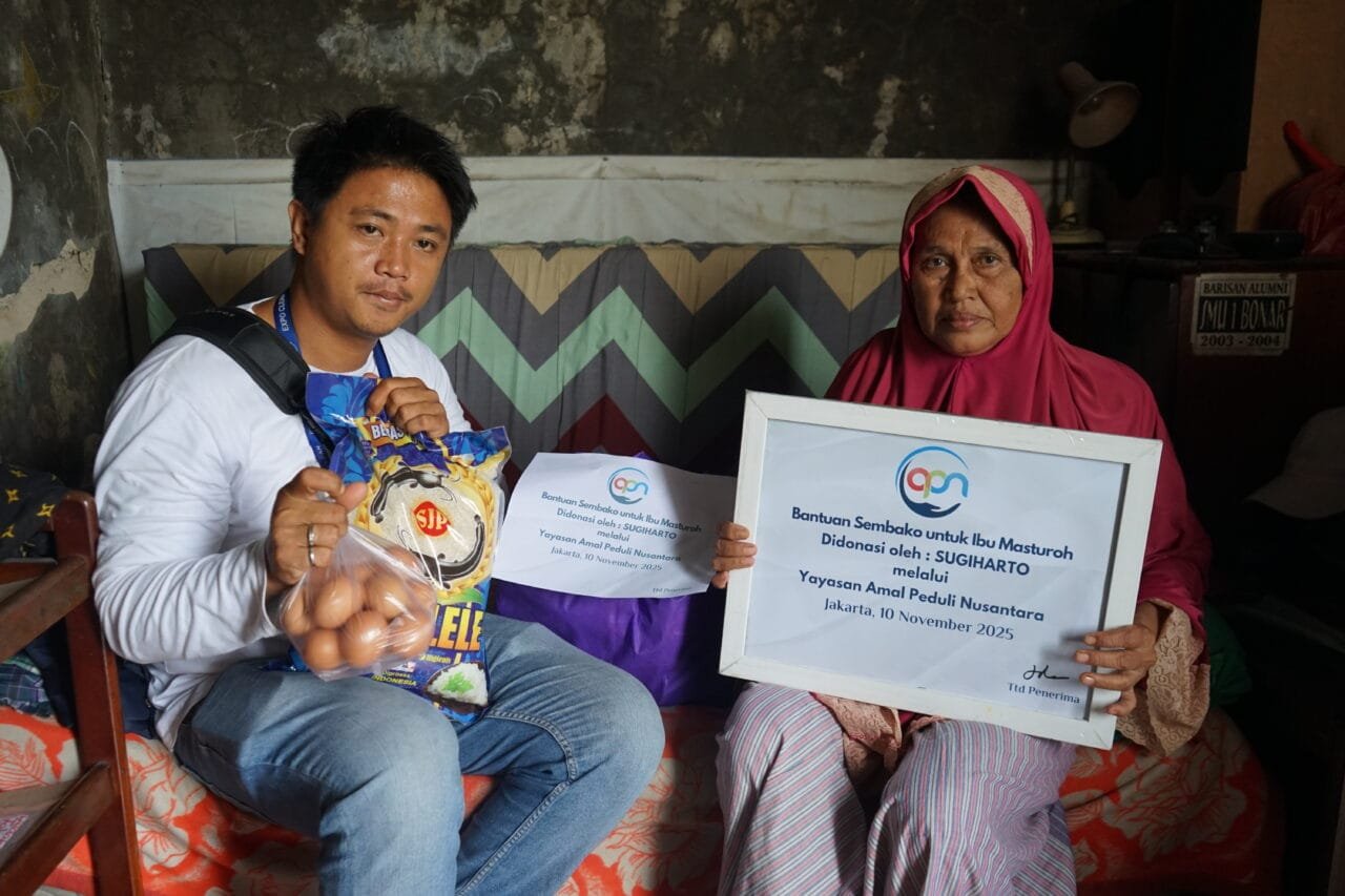 Setiap pagi, Ibu Masturoh masih membantu tetangganya berjualan gado-gado. Dari upah yang tak seberapa, ia menafkahi suami dan dua anaknya. Meski sederhana, semangatnya luar biasa. Ketika tim yayasan datang membawa paket sembako, ia menatap penuh haru sambil berulang kali mengucap terima kasih.
