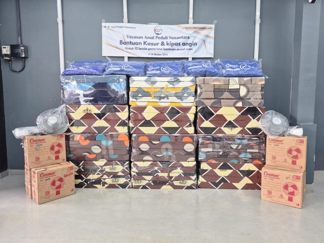 Yayasan Amal Peduli Nusantara terus berkomitmen menghadirkan kenyamanan dan perhatian bagi para lansia yang membutuhkan. Yayasan Amal Peduli nusantara berencana memberikan bantuan berupa kasur lipat dan kipas angin untuk 13 lansia penerima bantuan sosial rutin di beberapa wilayah pada 17 & 18 oktober 2025.