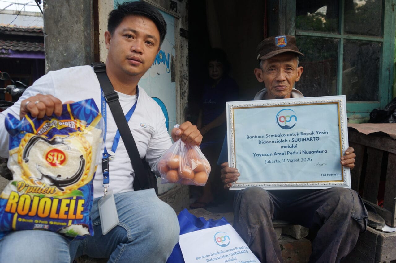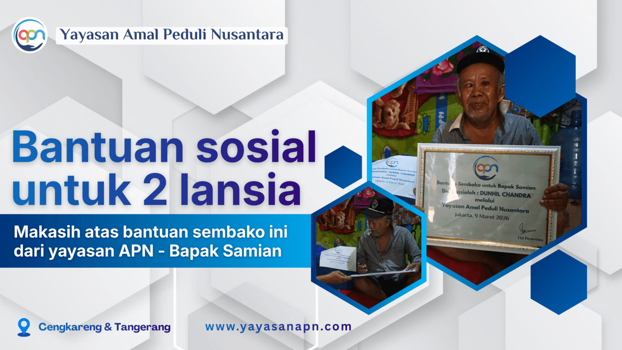 Yayasan Amal Peduli Nusantara kembali menyalurkan bantuan berupa paket sembako kepada dua lansia yang membutuhkan di wilayah Tangerang dan Jakarta Barat. Bantuan ini diberikan sebagai bentuk kepedulian terhadap para lansia yang masih harus berjuang memenuhi kebutuhan hidup di masa tuanya.