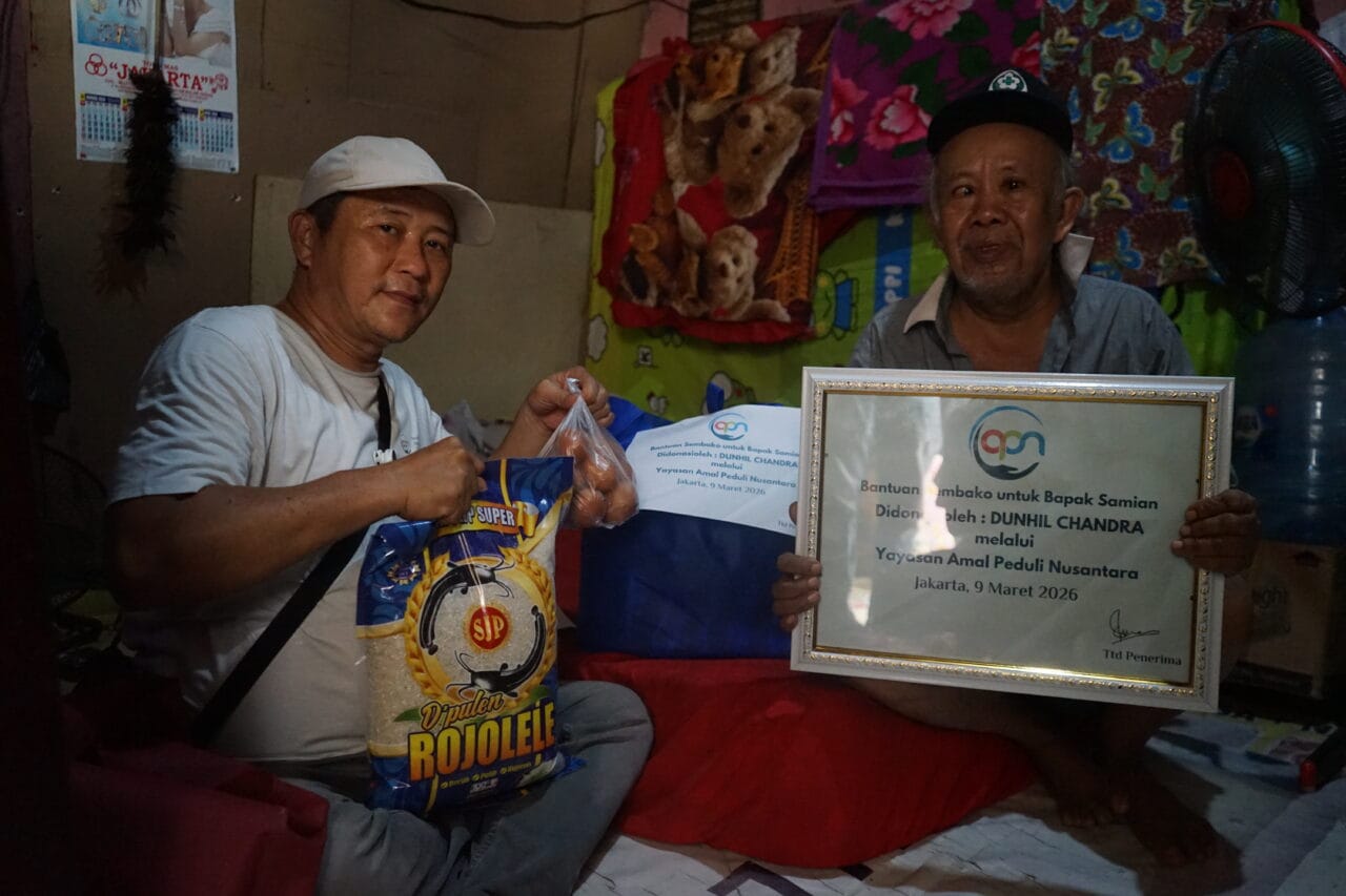 Di usia yang seharusnya menjadi masa beristirahat, dua lansia ini masih harus bekerja keras demi menyambung hidup. Melalui kepedulian bersama, Yayasan Amal Peduli Nusantara menyalurkan bantuan sembako untuk meringankan kebutuhan harian mereka.