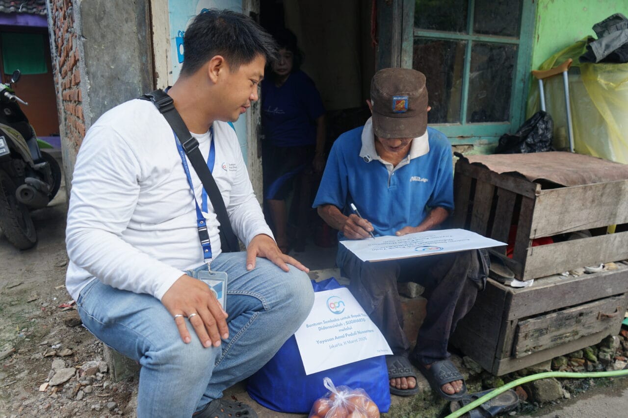 Salah satu penerima bantuan adalah Samian (68 tahun) yang tinggal di Kampung Bencongan, Tangerang. Di usia senjanya, ia masih harus bekerja sebagai pemulung untuk memenuhi kebutuhan hidup bersama sang istri. Dari pekerjaan tersebut, penghasilannya hanya sekitar Rp700.000 per bulan, jumlah yang sangat terbatas untuk mencukupi kebutuhan sehari-hari.