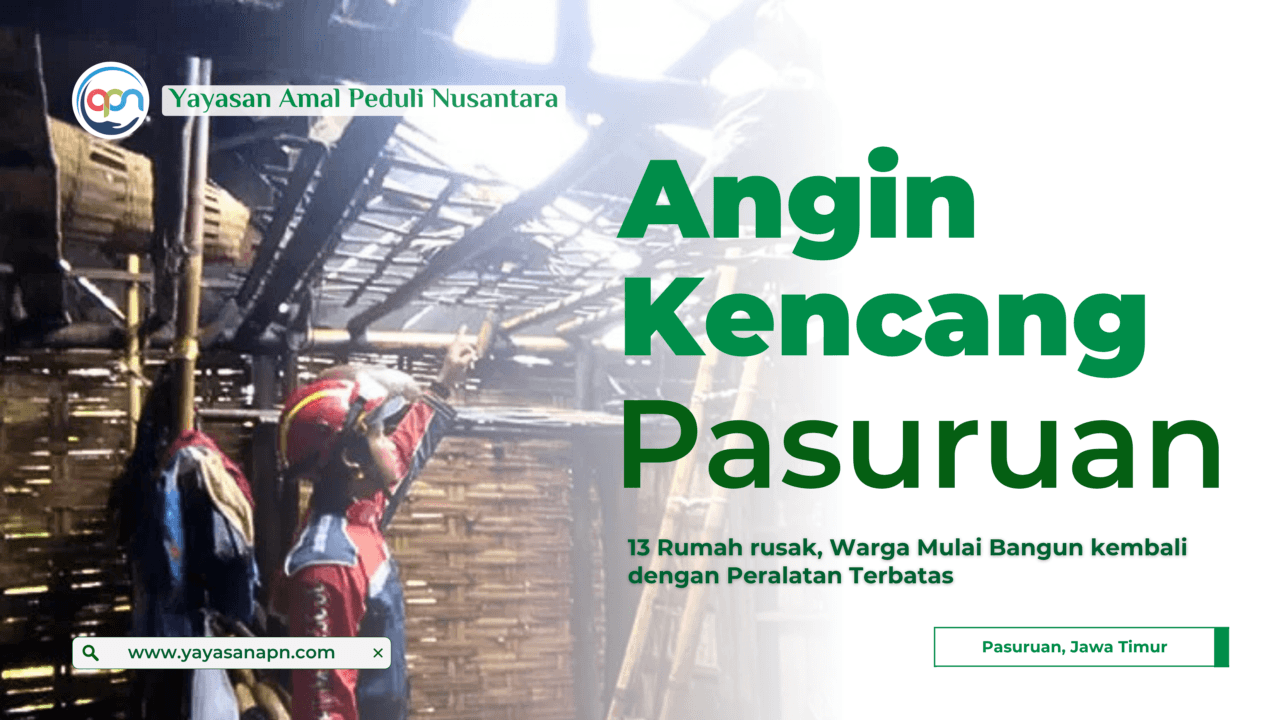Yayasan Amal Peduli Nusantara menyampaikan rasa keprihatinan kami kepada warga korban angin kencang dan cuaca buruk di wilayah pasuruan. Kami juga berharap tidak adanya penambahan korban kerusakan dan terjadi pemulihan cepat oleh instansi setempat.